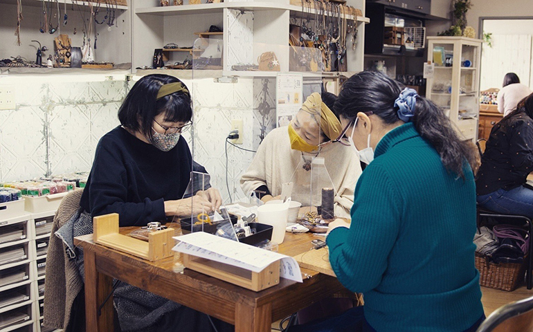 南米で学んだ伝統技法をもとに、初心者から上級者まで、幅広いレベルに対応したワークショップを開催。市販にはない、自分だけのデザインを形にできる、その達成感と唯一無二の作品の輝きに、手仕事ならではの喜びを実感できます。