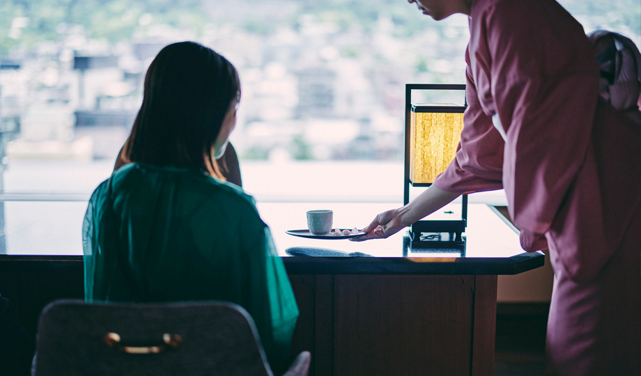 このホテルの象徴が、最上階にある「空庭テラス」。ここからは、眼下に鴨川、そして遠くに東山の山並みや清水寺などを一望でき、京都のうつくしいパノラマが広がります。併設された天空露天風呂「八坂の湯」につかれば、街の喧騒が嘘のような静寂と絶景に包まれます。
