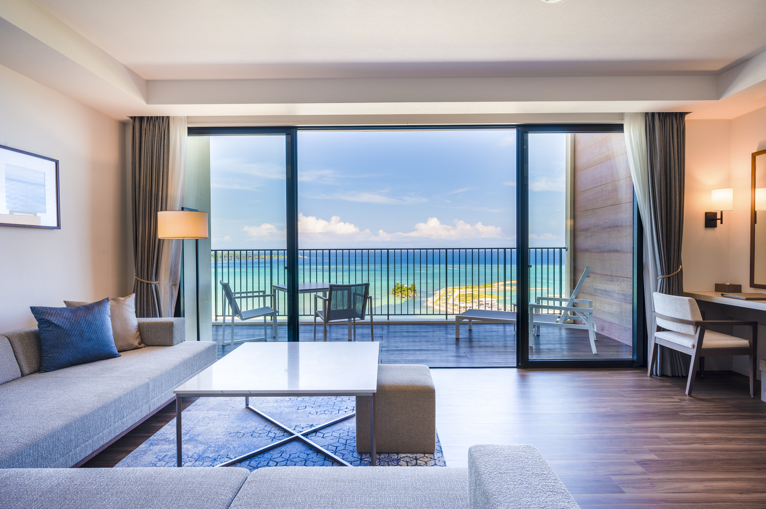沖縄本島・恩納村のうつくしい海を見下ろす高台に佇む「HIYORIオーシャンリゾート沖縄」は、「暮らせるリゾート」をコンセプトにしたラグジュアリーホテルです。最大の魅力は、全室オーシャンビュー。リビングとテラスが一体となった70平方メートル以上の広々とした空間は、まるで海と空に溶け込むような開放感にあふれています。