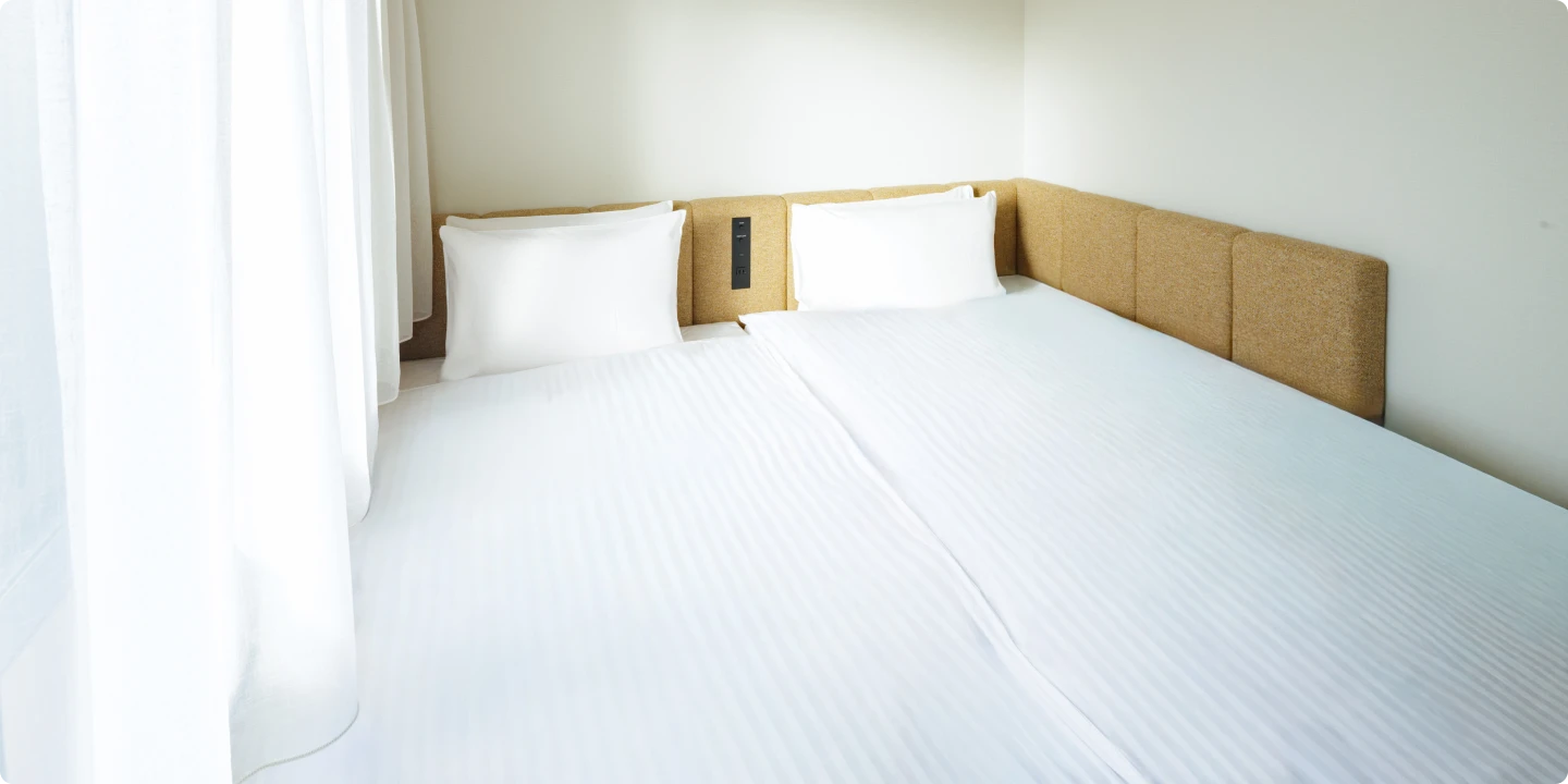 もっとも部屋数の多い「スタンダードダブル」は、13.00㎡というコンパクトな広さながら、1,400mm幅のゆったりとしたダブルベッドを配置しており、機能性とくつろぎを見事に両立させています。「スタンダードツイン」は、1,000mm幅のベッドを2台設置しており、友人同士の国内旅行などで互いのプライベートな睡眠環境を重視したい場合に最適です。