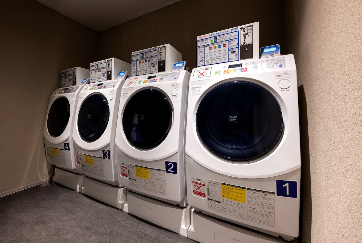 地下1階には、長期滞在の強い味方コインランドリーを設置。洗剤自動投入型なので、洗剤を持ち歩く必要はありません。また、製氷機や電子レンジも完備されており、近くのコンビニ(徒歩1分圏内にあり)で買ってきた夜食を温めるのにも便利です。