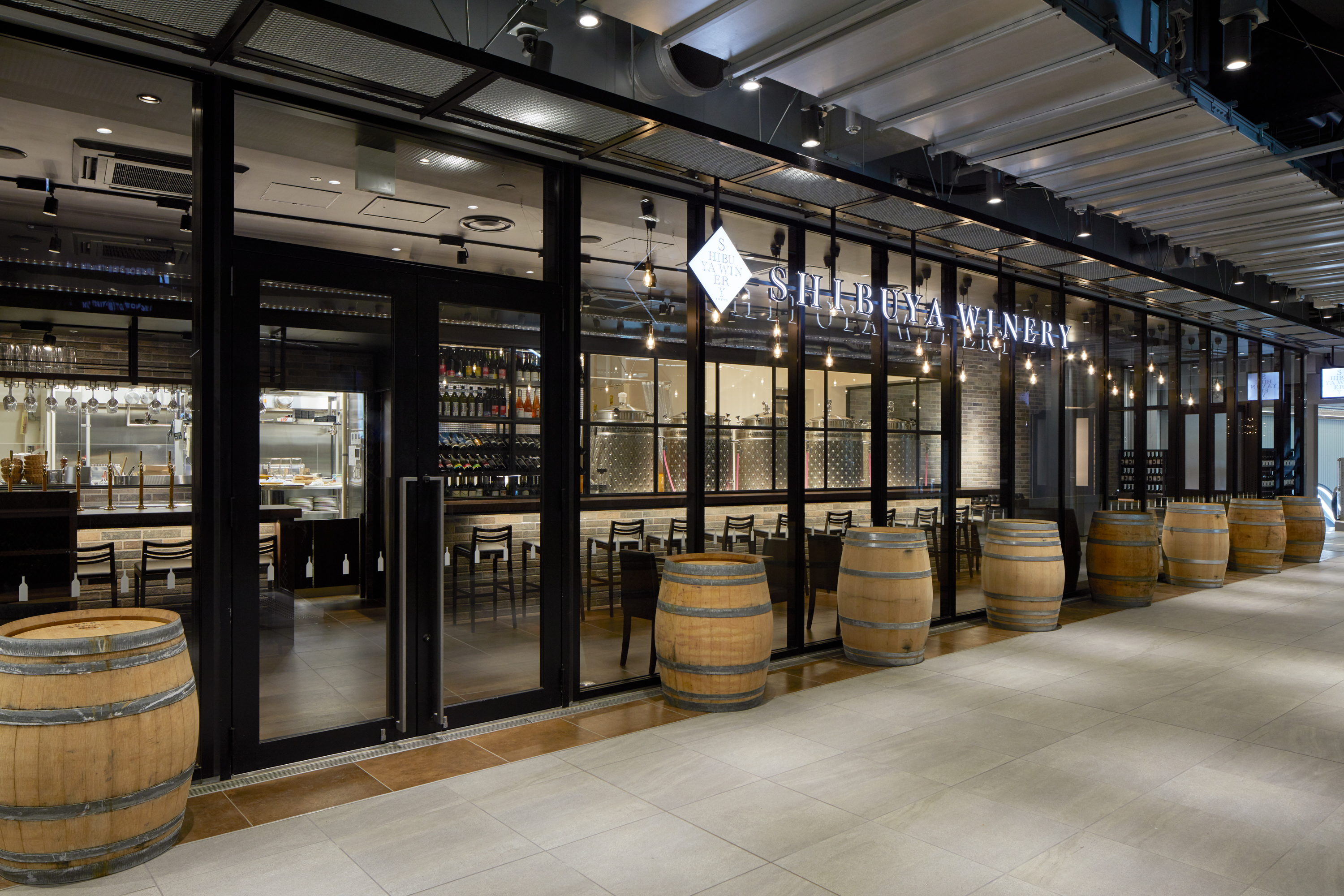 店内に一歩足を踏み入れると、ガラス越しに並ぶ醸造タンクが目に入り、渋谷の街で造られたフレッシュなワインを楽しめます。