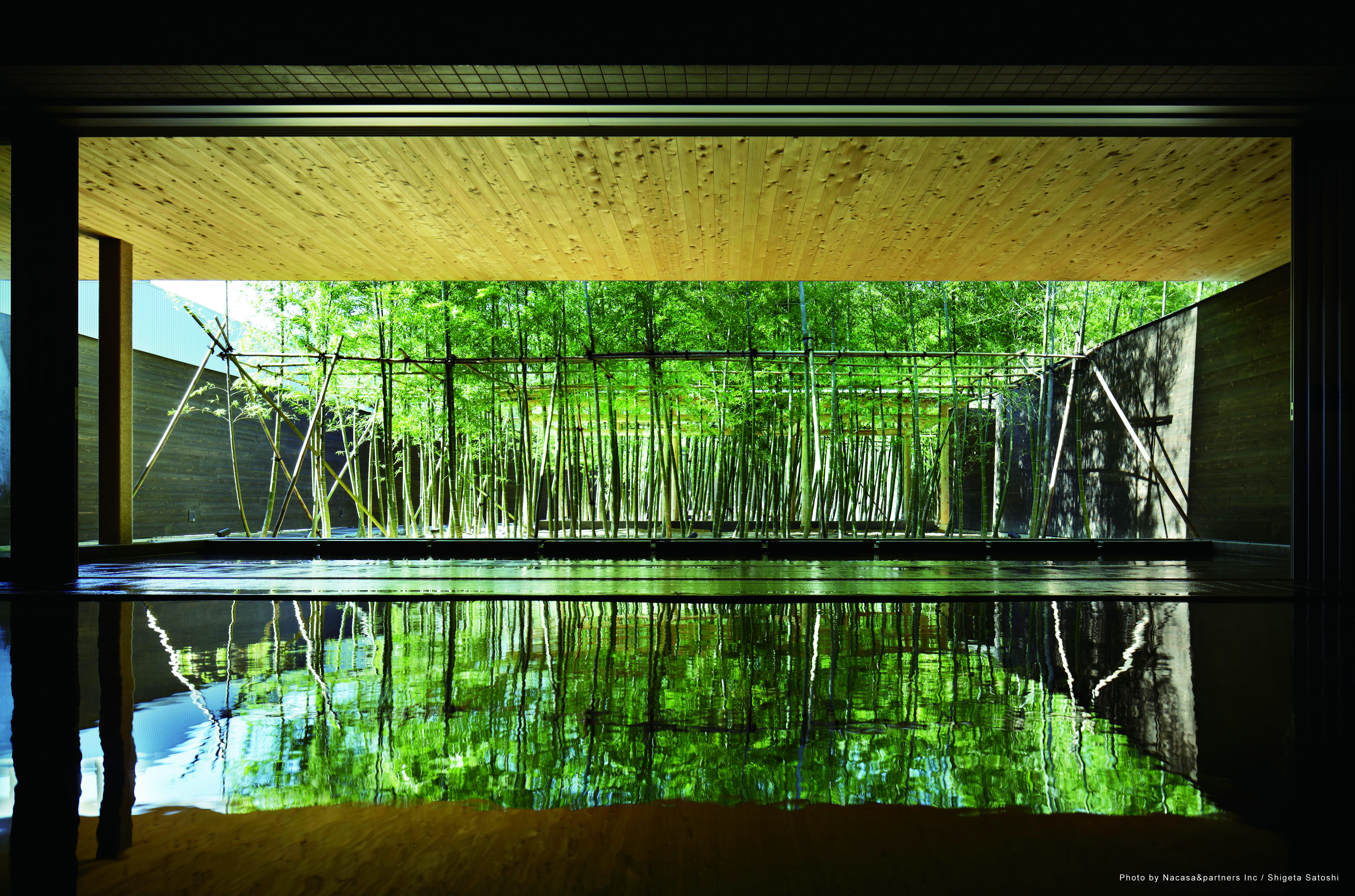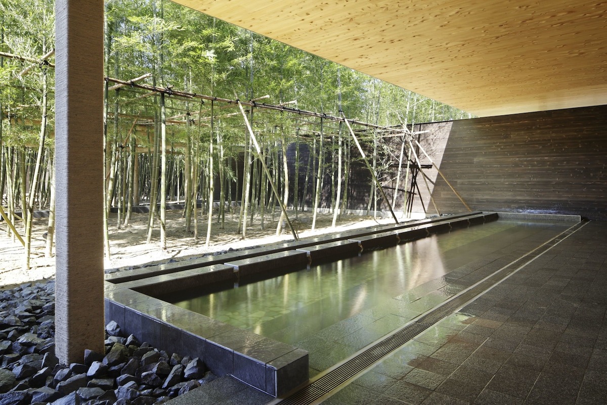 日帰り入浴施設「片岡温泉」。加水・加温・循環一切なしの100%源泉かけ流しの湯を、開放的な内湯や竹林に囲まれた露天風呂で心ゆくまで楽しめます。また、辻口博啓、奥田政行、笠原将弘という3人の巨匠が手がけるレストラン、パティスリー、ベーカリーがすべてそろう、まさに美食の殿堂 です。