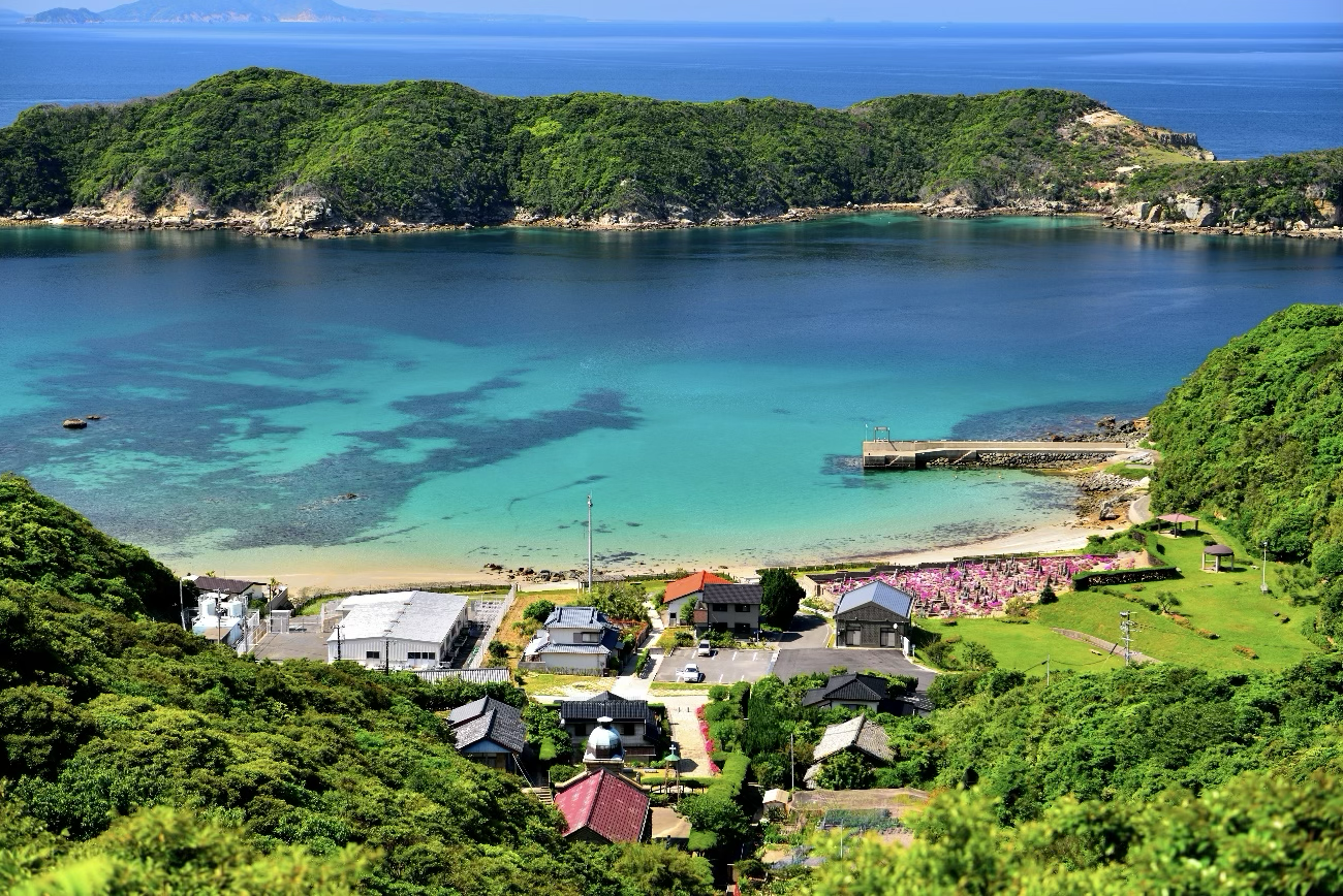 五島列島に位置する新上五島町は、世界文化遺産「長崎と天草地方の潜伏キリシタン関連遺産」の構成資産「頭ヶ島の集落」を擁しています 。青い海と島特有の緑に囲まれた集落と、石造りの教会が織りなす景観は、信仰という歴史的な物語と、離島の純粋な自然美が一体となった、非常に希少な日本の原風景です。特に、禁教時代に信仰を守り続けた潜伏キリシタンの暮らしの痕跡が、集落の地形や生活文化に深く刻まれており、その精神的な深みが風景の価値を押し上げています 。世界遺産としての保全体制が整っている点も高評価の理由です。