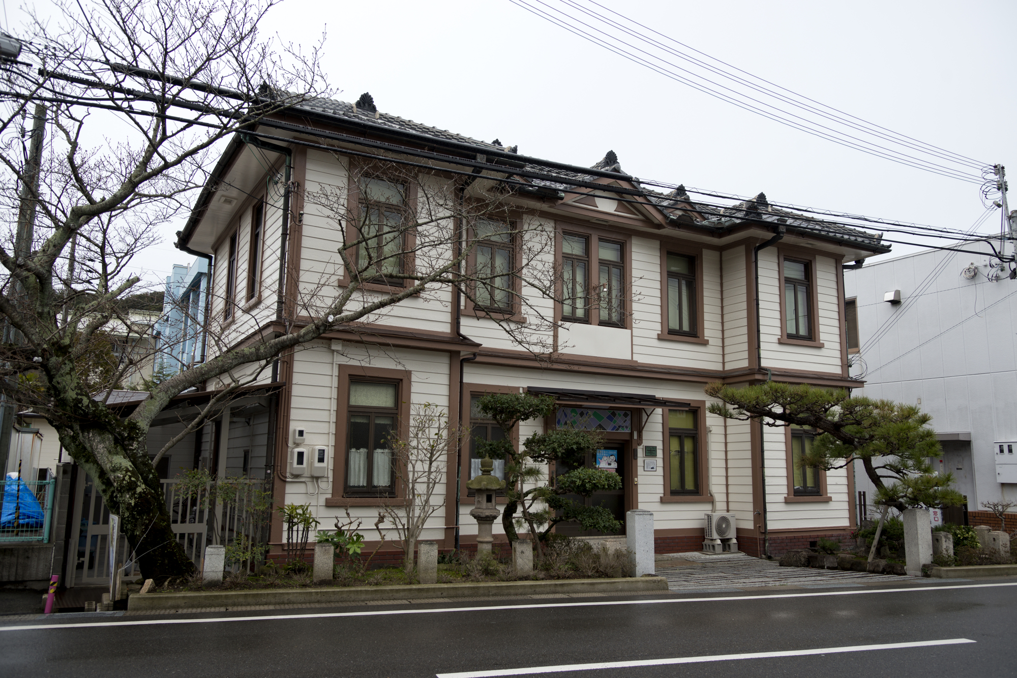 左右対称の美しいデザインや、中央上部のペディメント(三角形の装飾)など、大正ロマンの雰囲気が漂う貴重な建物として、国の登録有形文化財にも指定されています。