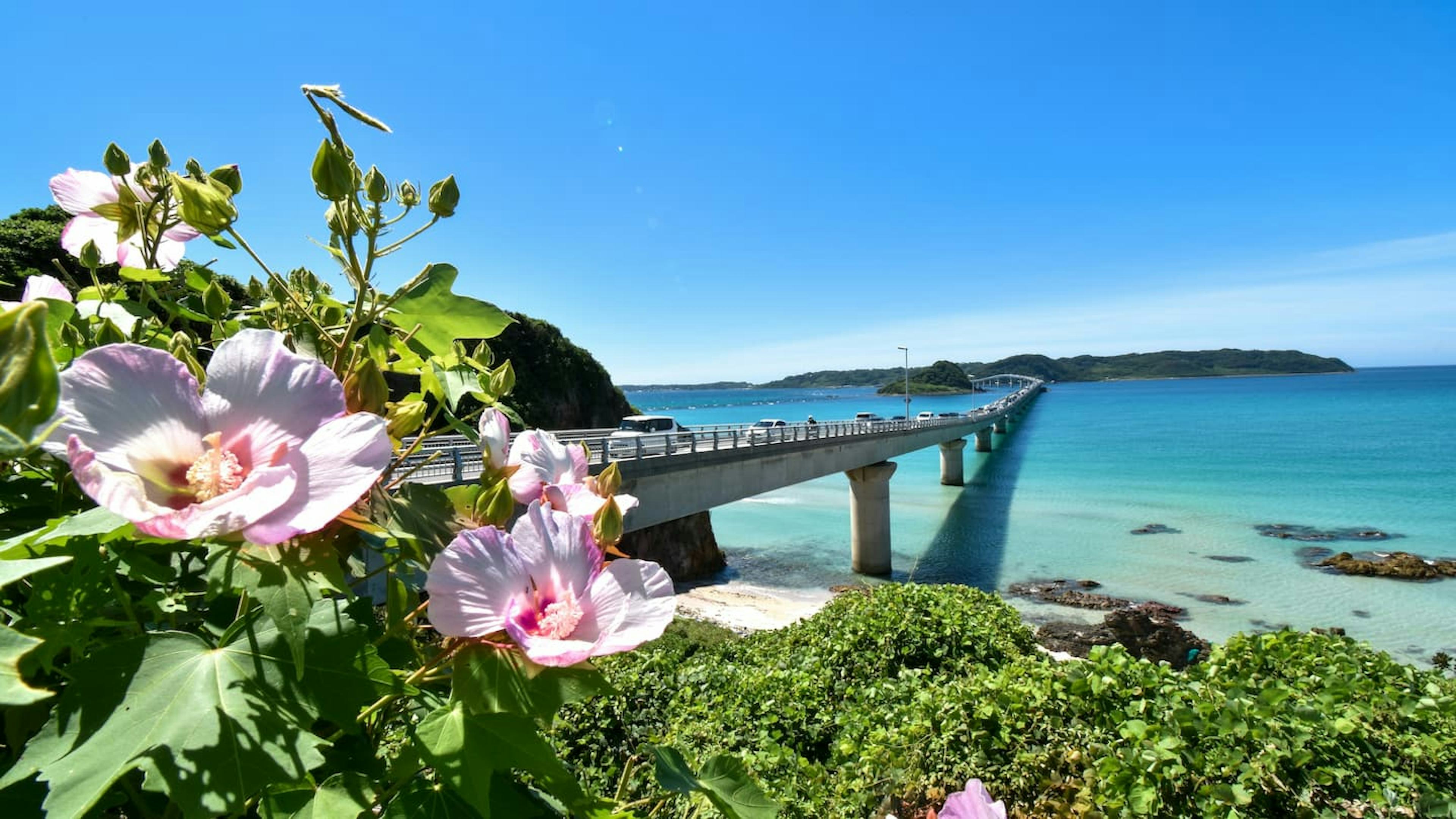 角島大橋は、本州と角島を結ぶ全長1,780メートルの橋で、「日本の道100選」にも選ばれた絶景スポットです。青い海と白い橋のコントラストが美しく、多くの観光客や写真愛好家を魅了しています。