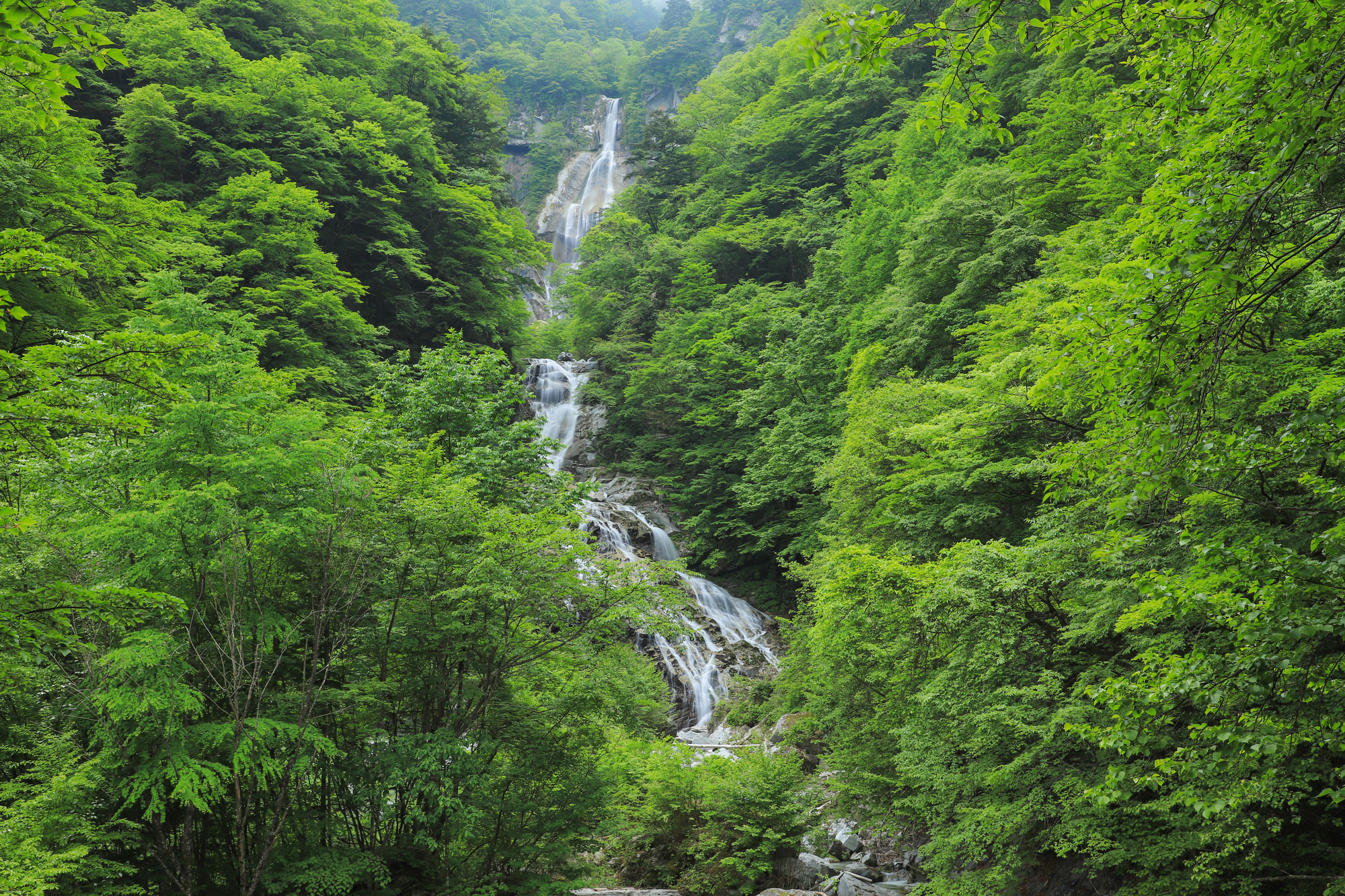 清流と緑に囲まれた秘境の滝