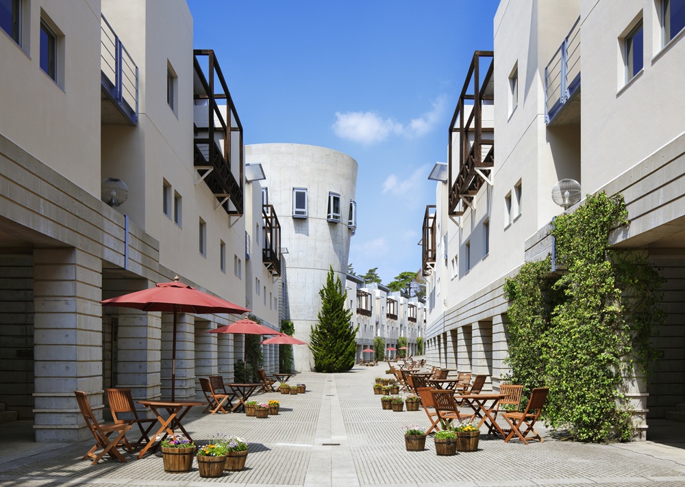 小淵沢駅から無料シャトルバスで約10分と、少し足を延ばしますが、小淵沢駅観光でぜひ訪れたい人気の観光スポットが「リゾナーレ八ヶ岳」です。特に、石畳の小路に沿ってカフェやレストラン、セレクトショップが並ぶ「ピーマン通り」は、海外のリゾート地に来たかのようなおしゃれな雰囲気があります。