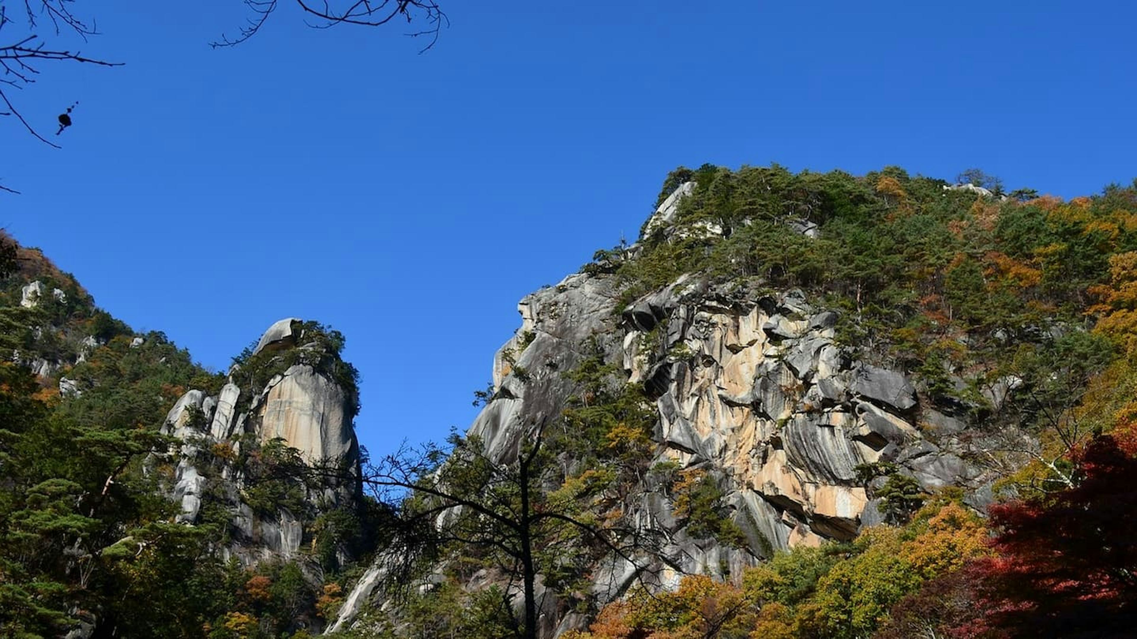 見どころの一つである覚円峰(かくえんぽう)は、白い岩壁が空に向かってそびえ立つ印象的な景観を誇ります。また、日本の滝百選に選ばれた仙娥滝(せんがたき)や、荒川ダム周辺の美しい森林など、自然の造形美を堪能できるのが魅力です。