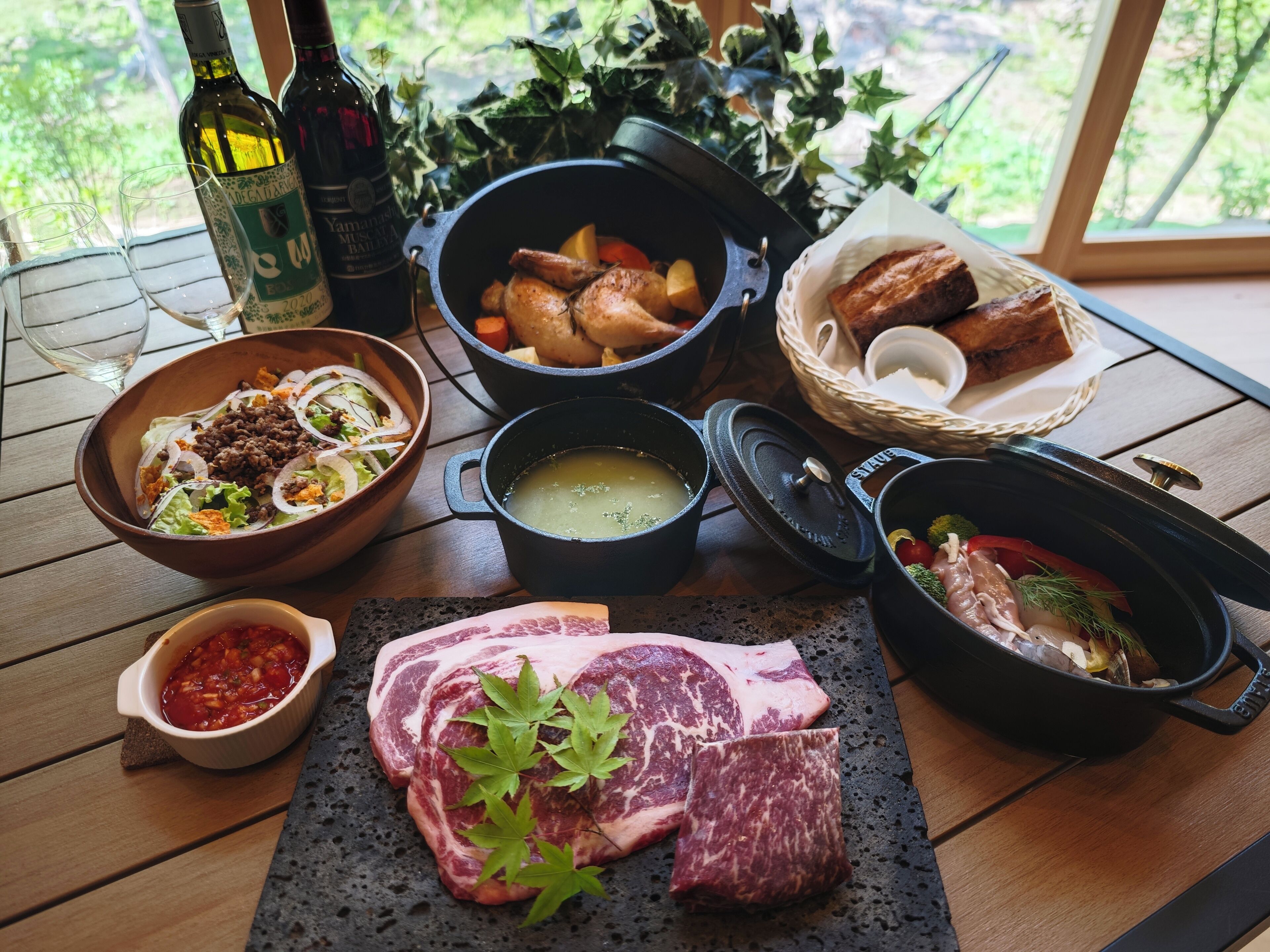 お米は武川米や梨北米など選び抜かれた地元産。甲州ワインビーフや富士桜ポーク、サーモン富士の介など、全国的にも知られるようになった山梨ブランド食材をたっぷり味わえます。