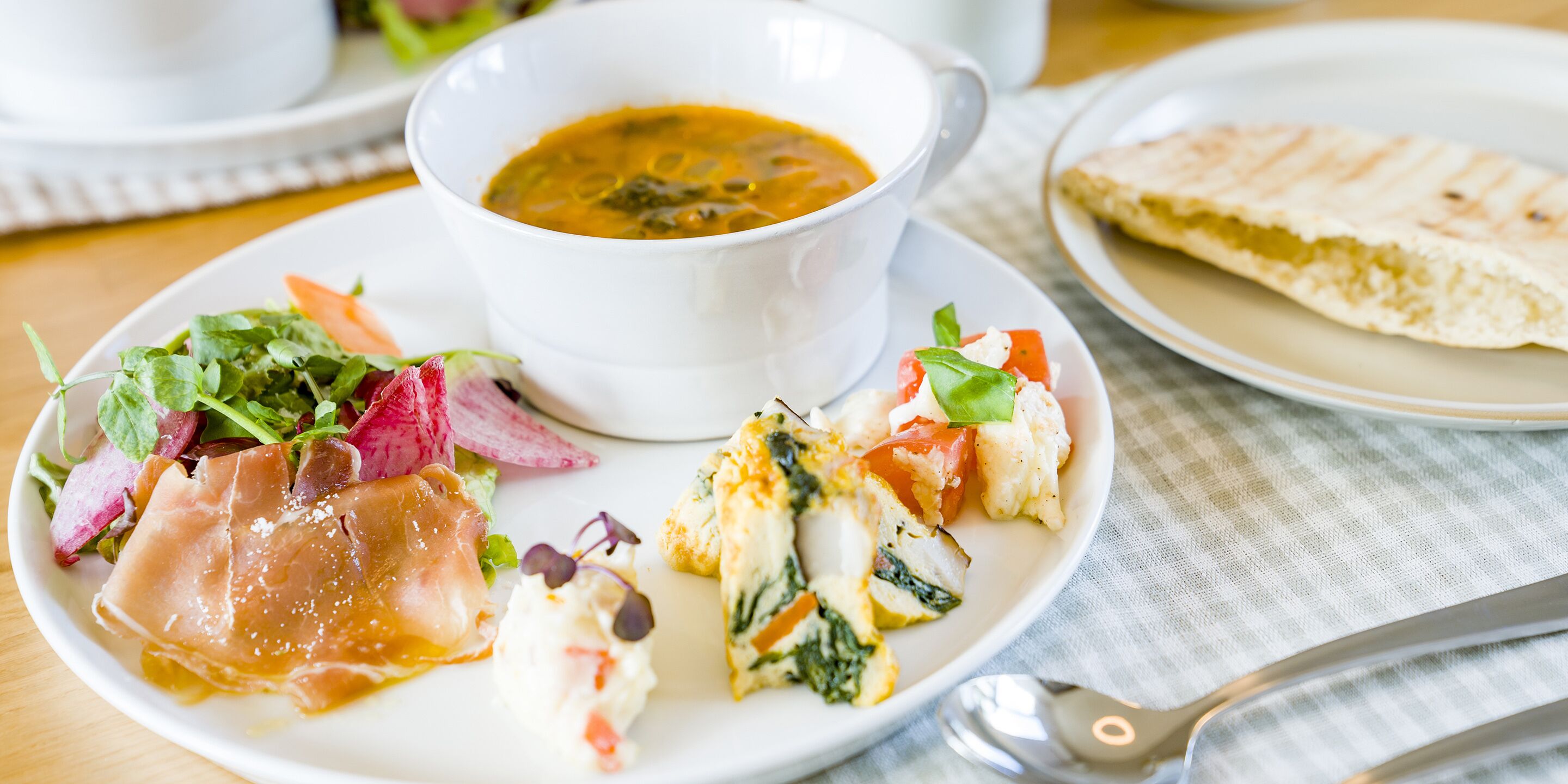 朝食はレストランでの豊富なビュッフェ。赤ちゃんがいる場合は花小路でのセットメニューを選ぶこともできます。離乳食の温めや食器、ベビーラックの貸し出しなどサービスも充実していますよ。