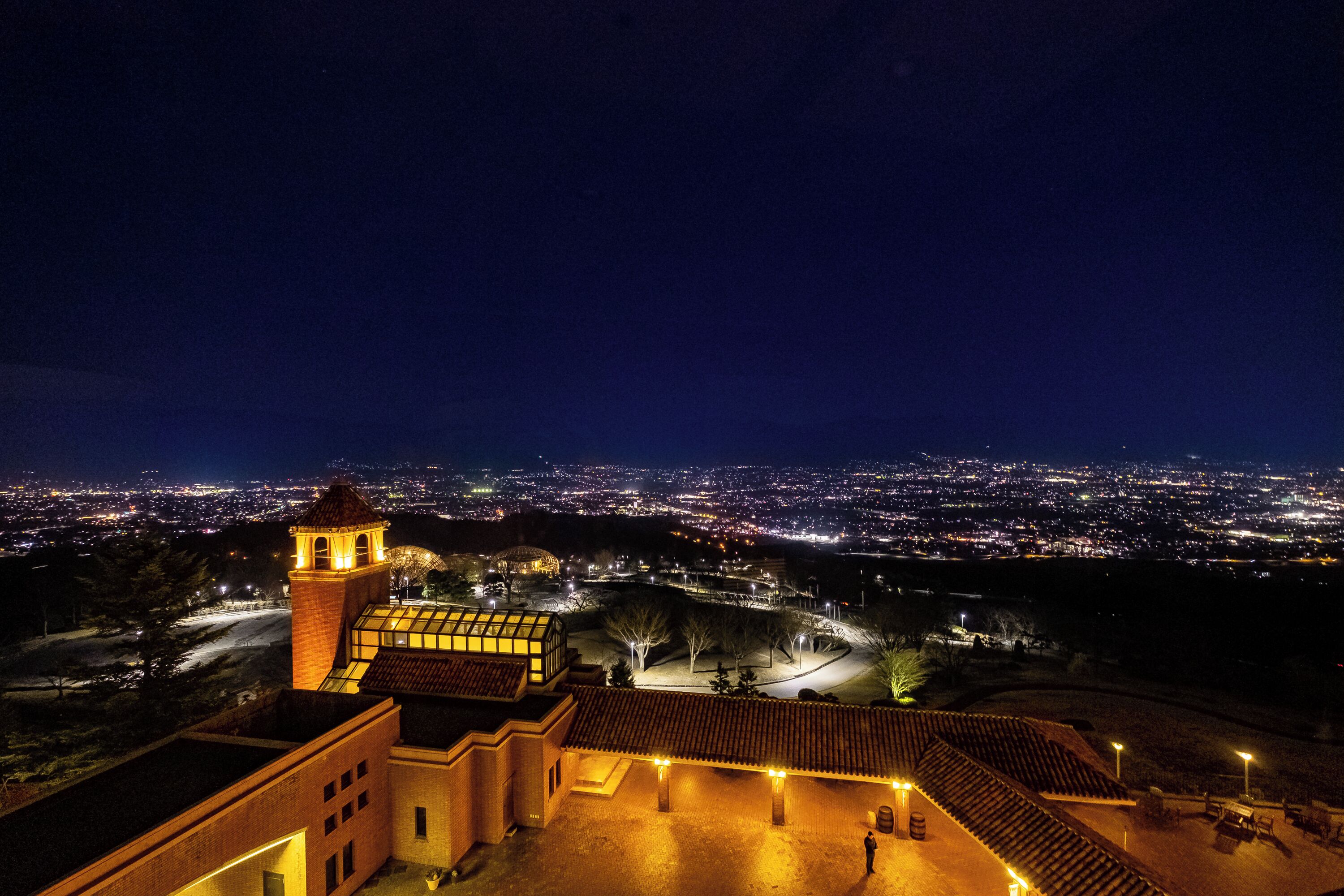大浴場のお風呂は7種類。細かな気泡が全身を包み込む泡風呂(バイブラバス)や、寝ながら入れる寝風呂、湯温の異なるお風呂などが楽しめます。富士山や甲府市街を一望しながら湯浴みを楽しめる絶景の露天風呂も人気。とくに夜には富士山のすそ野に広がるすばらしい夜景が楽しめます。