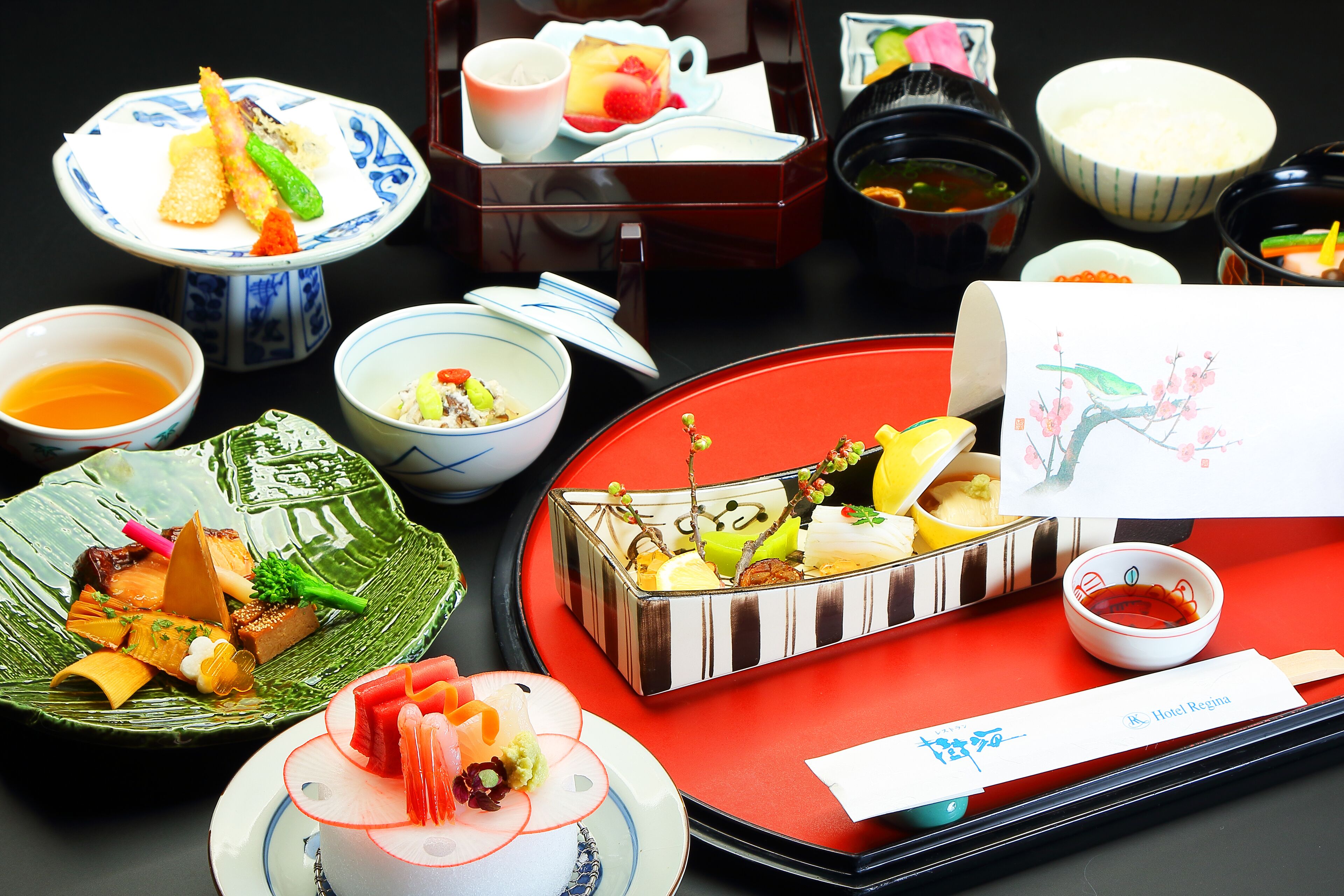 食事は料亭出身の料理長が手掛ける本格懐石や和牛懐石などがいただけ、しゃぶしゃぶ食べ放題や陶板焼御膳などコースの種類も豊富です。