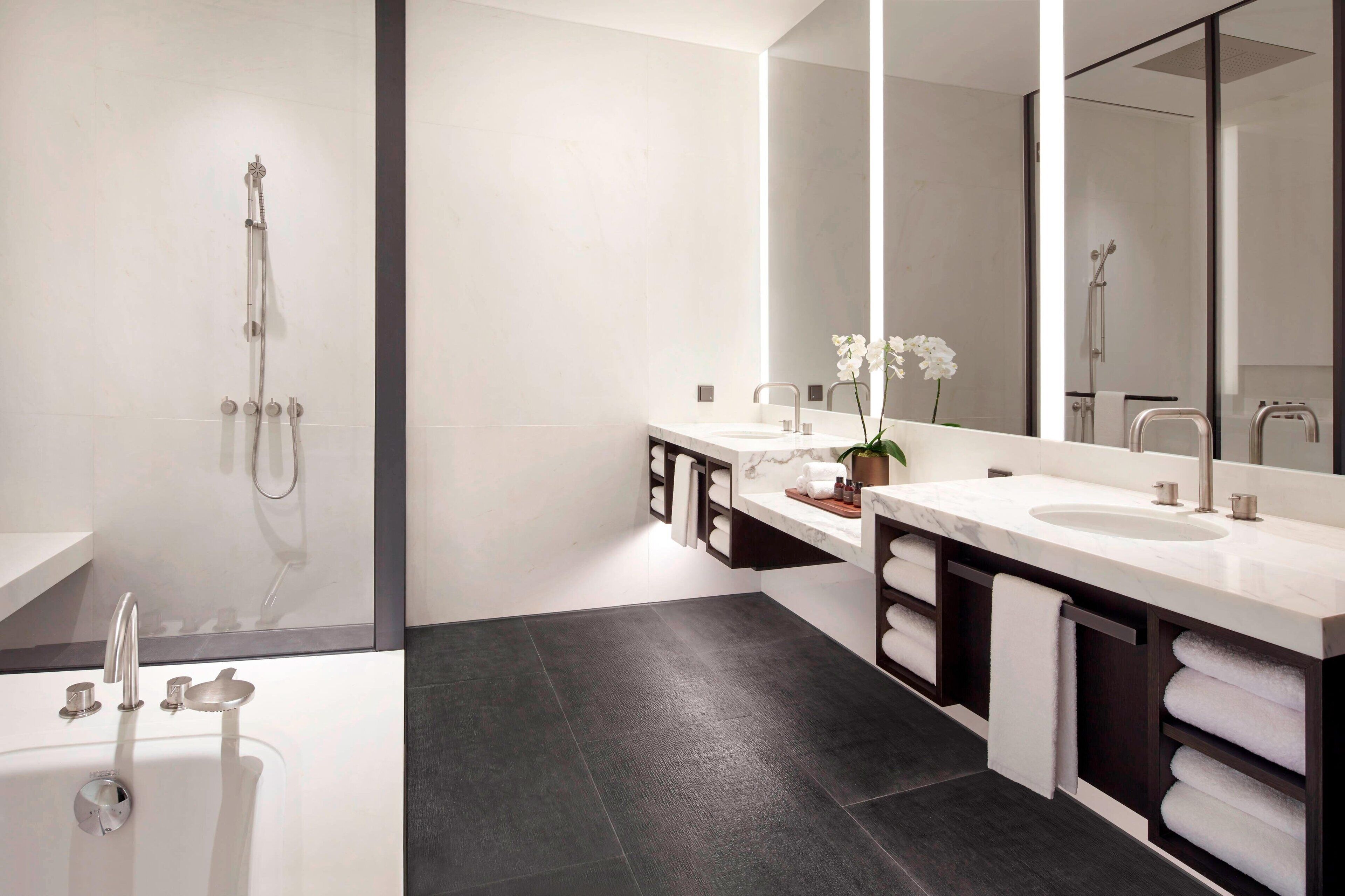バスルームはバスタブ付きで、温水洗浄便座を完備。上質なアメニティと広々とした空間で、1日の疲れをしっかりと癒せます。