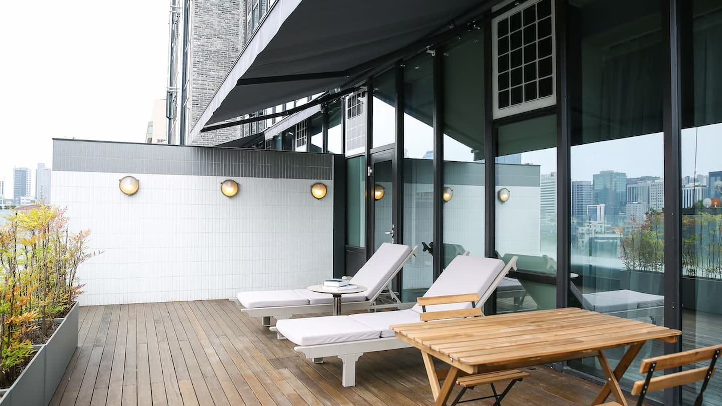 Hotel Crescendo Seoulは、客室外の設備やサービスも充実しており、滞在をより豊かにします。特に注目すべき見どころは、11階に設けられたエグゼクティブラウンジとテラスです。この高層階のテラスからは、江南エリアのシティビューを一望でき、プライベート感の高い空間で夜景や街並みを楽しむことができます。都会的な絶景を求めるスマホ世代にとって、SNS映えする最高の見どころを提供しています。