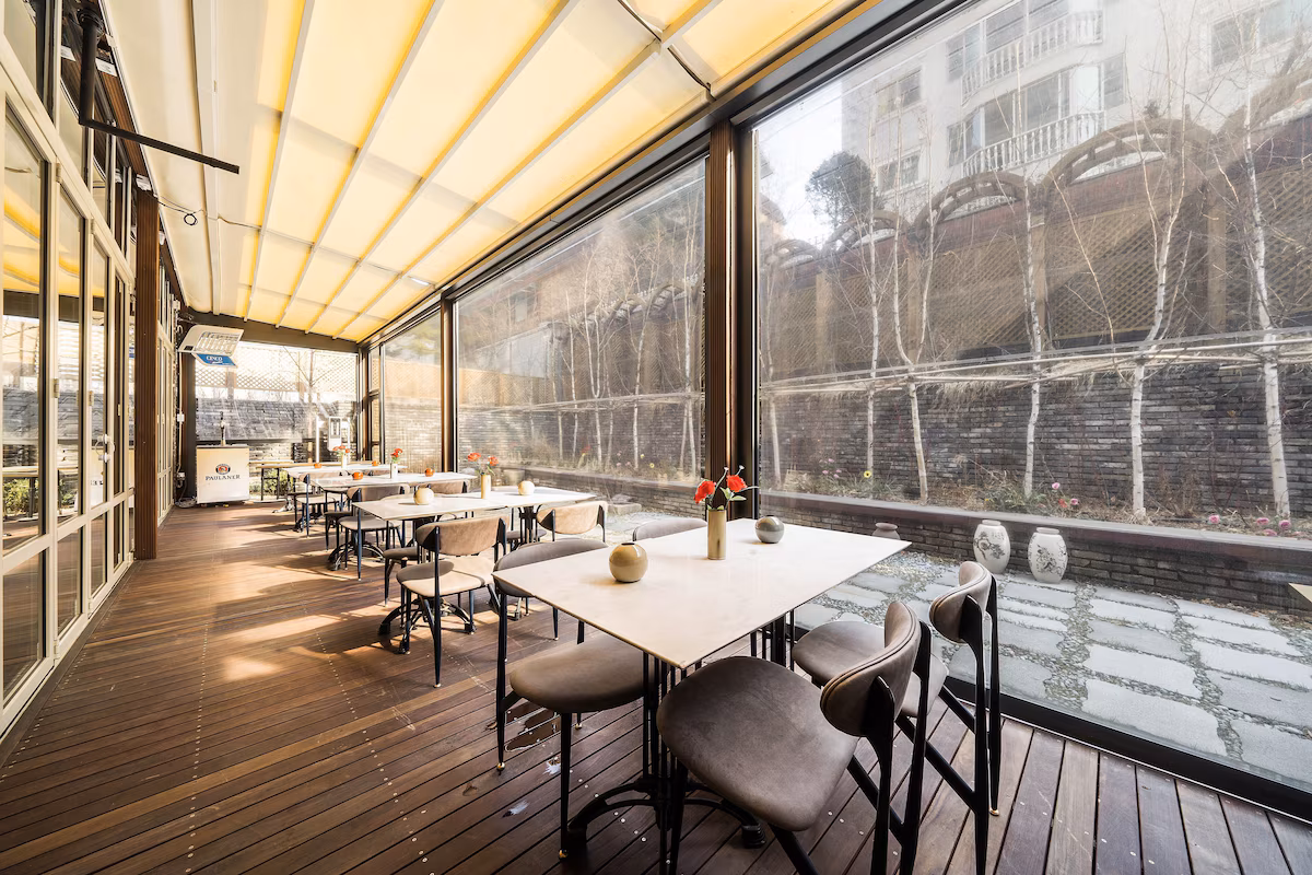 Hotel Crescendo Seoulの1階には、モダンヨーロピアン料理を提供するレストラン「428」があります。レストラン名「428」は、ホテルの住所(428 Bongeunsa-ro)にちなんで名付けられており、地域に根ざした強いブランディングを感じさせます。