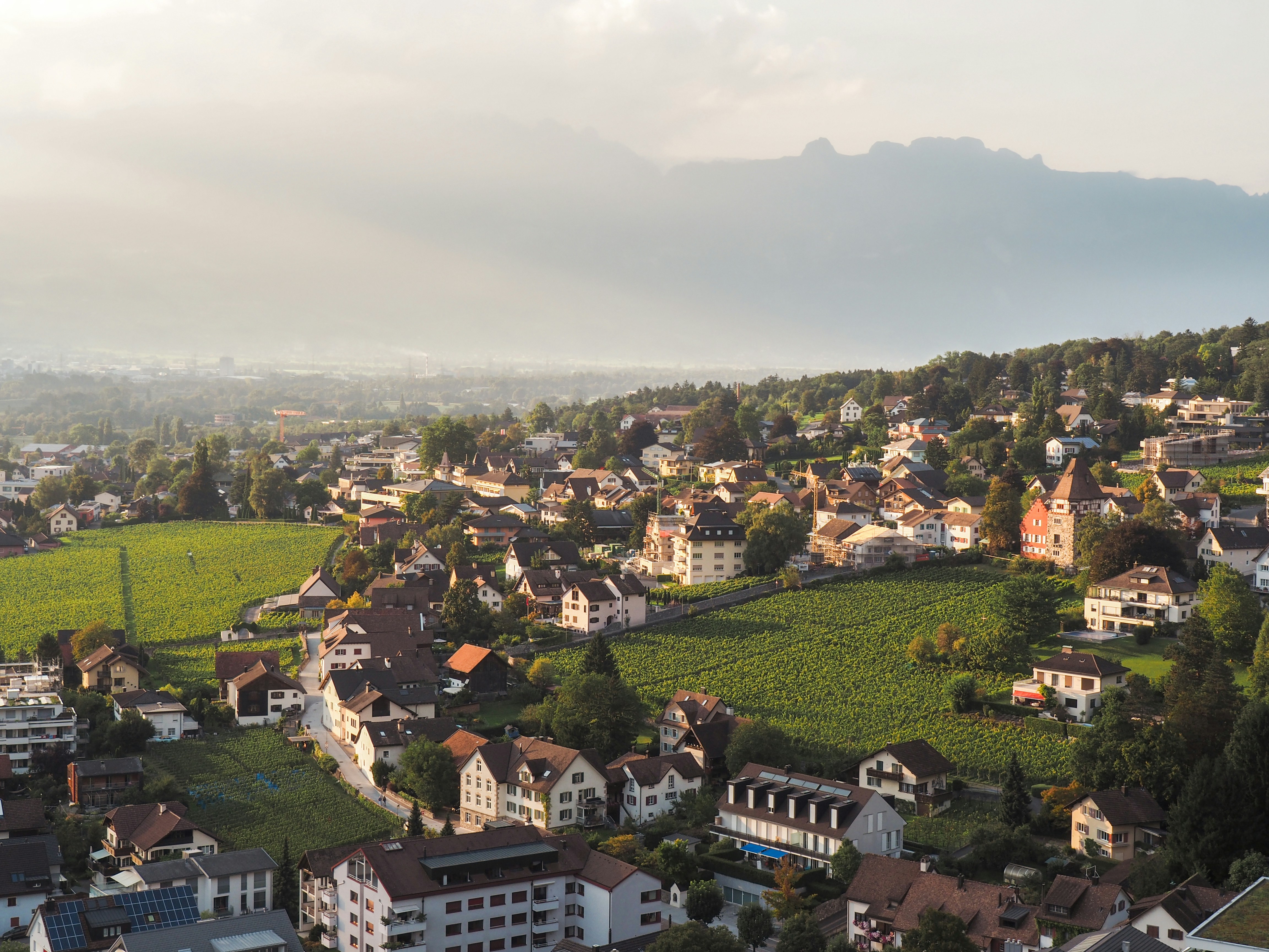 うつくしいブドウ畑を抜け、高台からファドゥーツの街とライン川、そしてスイスアルプスを見渡す絶景は、リヒテンシュタイン旅行のハイライトになること間違いなしです。