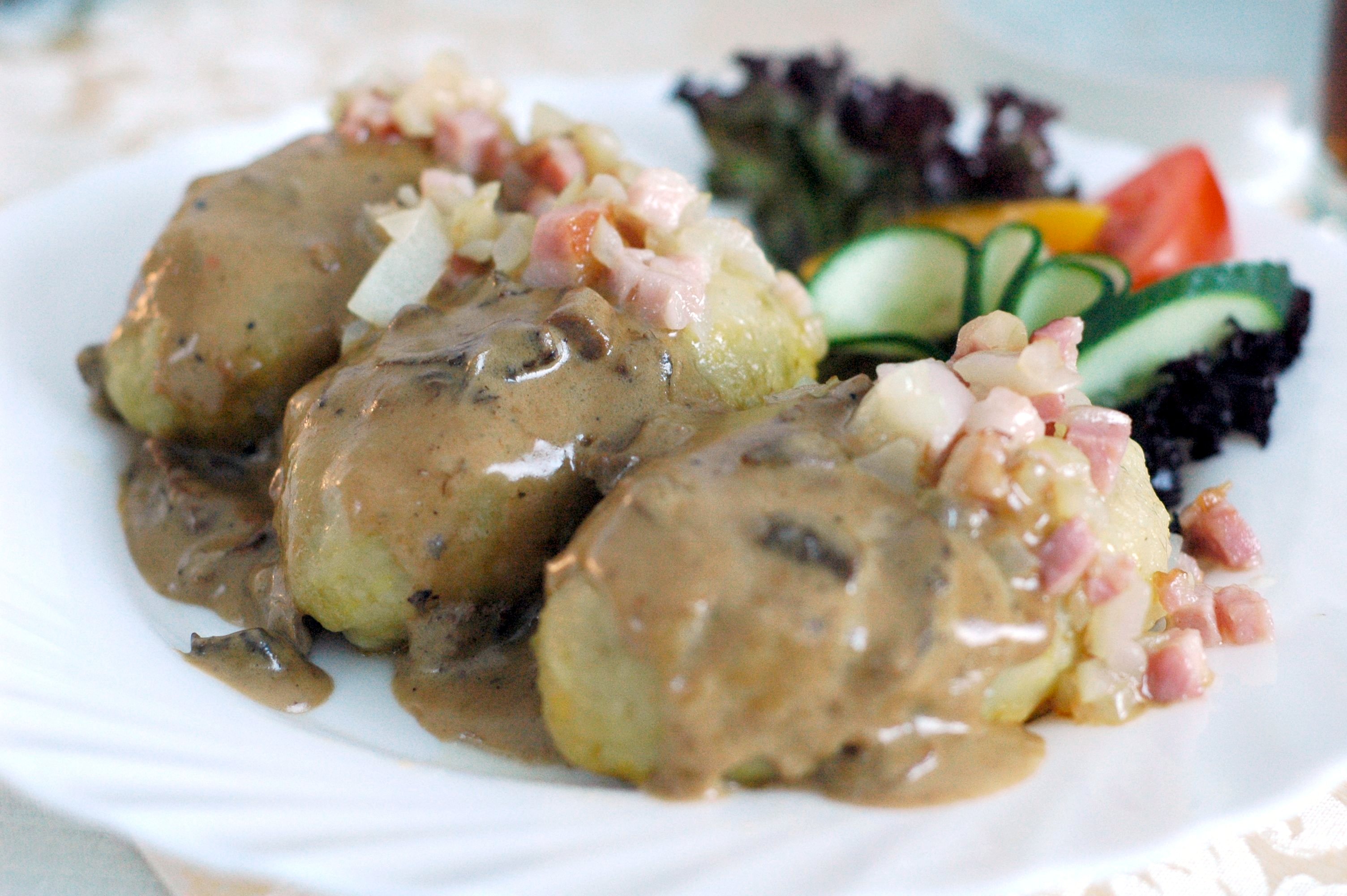 ヴィリニュスに来たら絶対に食べてほしいのが、じゃがいもで肉やチーズを包んだ、もちもち食感の伝統料理「ツェペリナイ(Cepelinai)」です。
