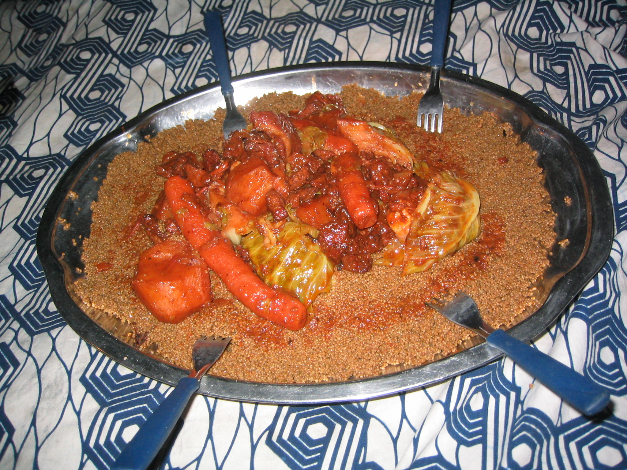 定番の国民食といえば、魚と野菜の炊き込みご飯「チェブジェン(Thieboudienne)」。海に面したモーリタニアならではの新鮮な魚が使われていて、一皿でボリューム満点です。