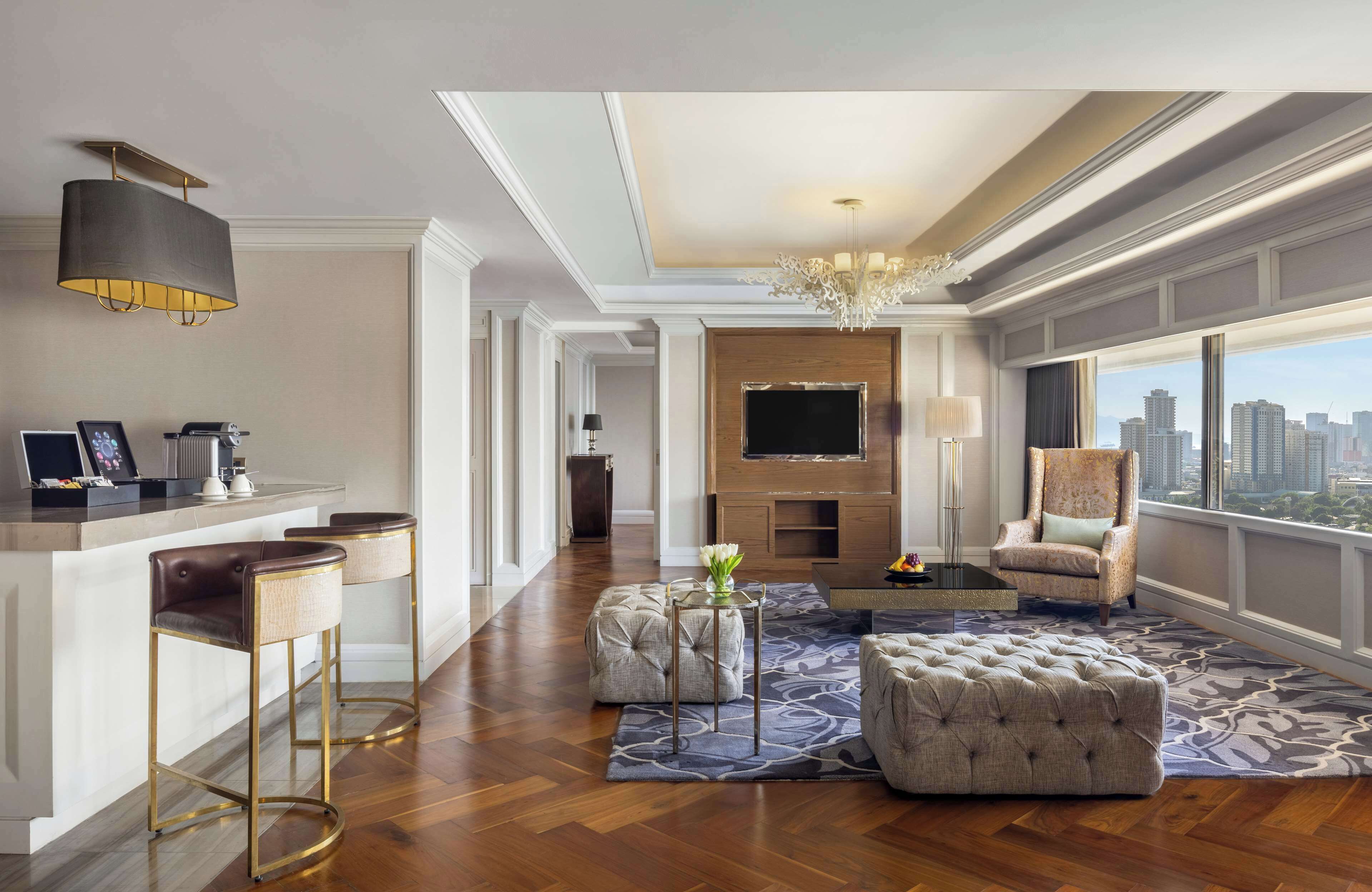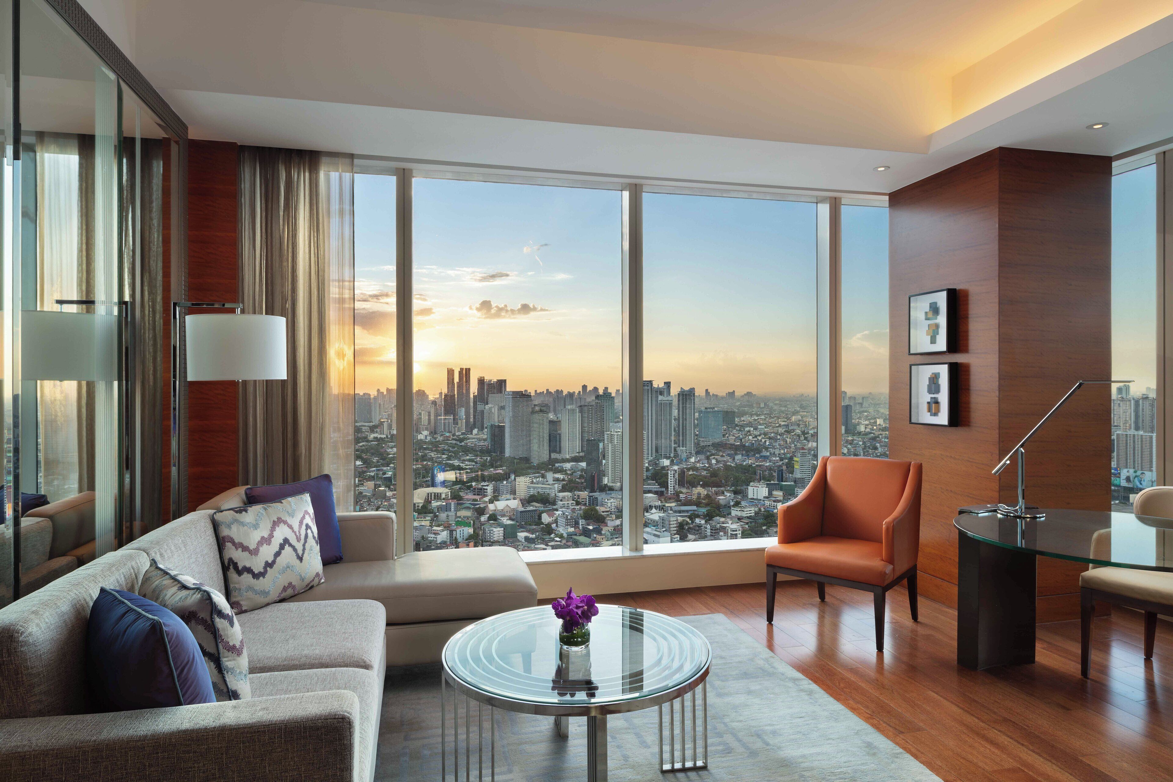 一方、ベイタワーの客室とスイートは世界各地から集められた家具や装飾で彩られたラグジュアリーでスタイリッシュな空間が魅力。多くのスイートからはマニラ湾の壮大な景色と息を呑むような夕日を望めます。シティビューのスイートからはマニラの魅惑的なスカイラインを一望。こちらは夜景の美しさでも人気です。