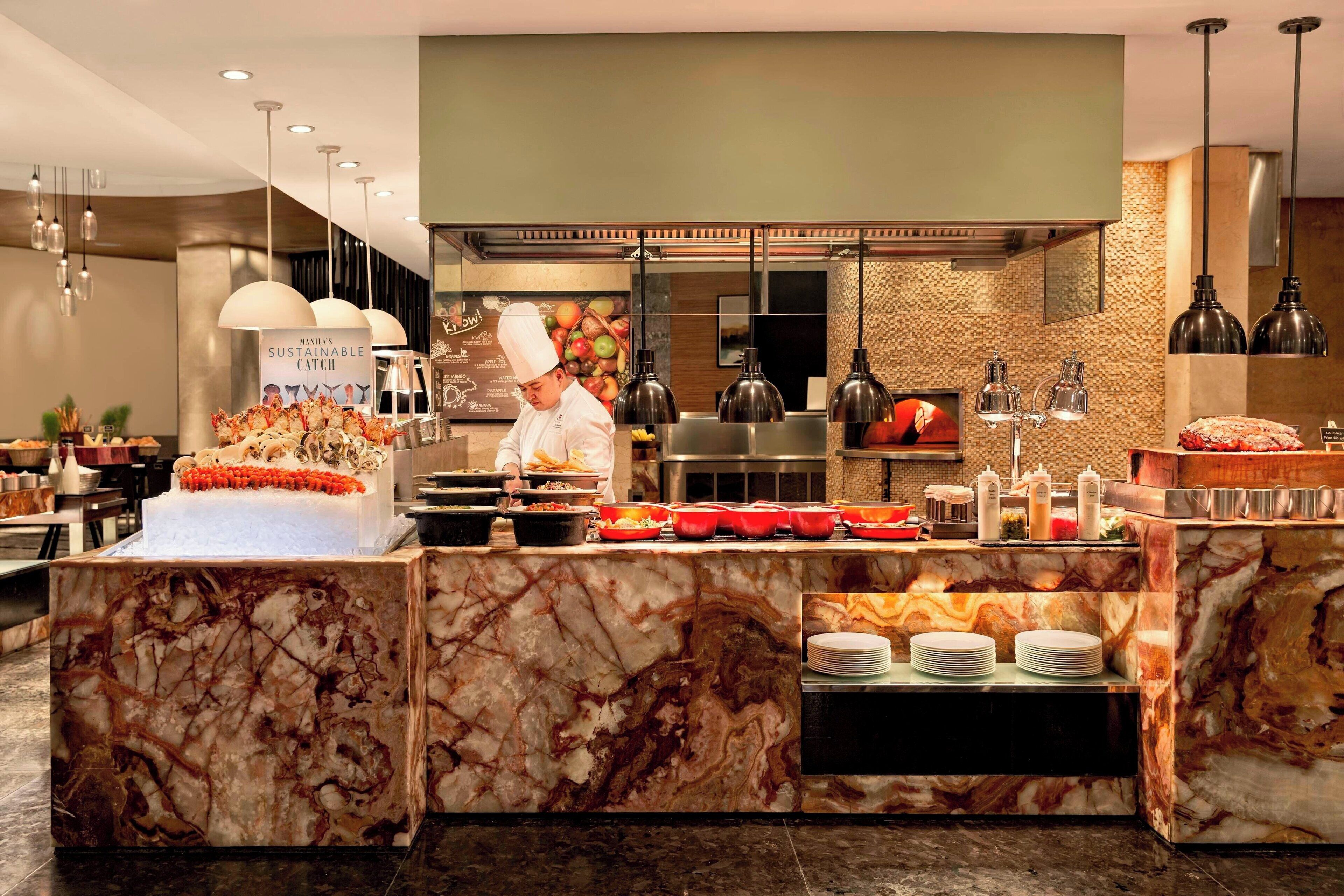 ソレアリゾートエンターテインメントシティは美食でもおなじみ。各国料理のビュッフェから地元のフィリピン料理まで、さまざまなダイニングから選べます。