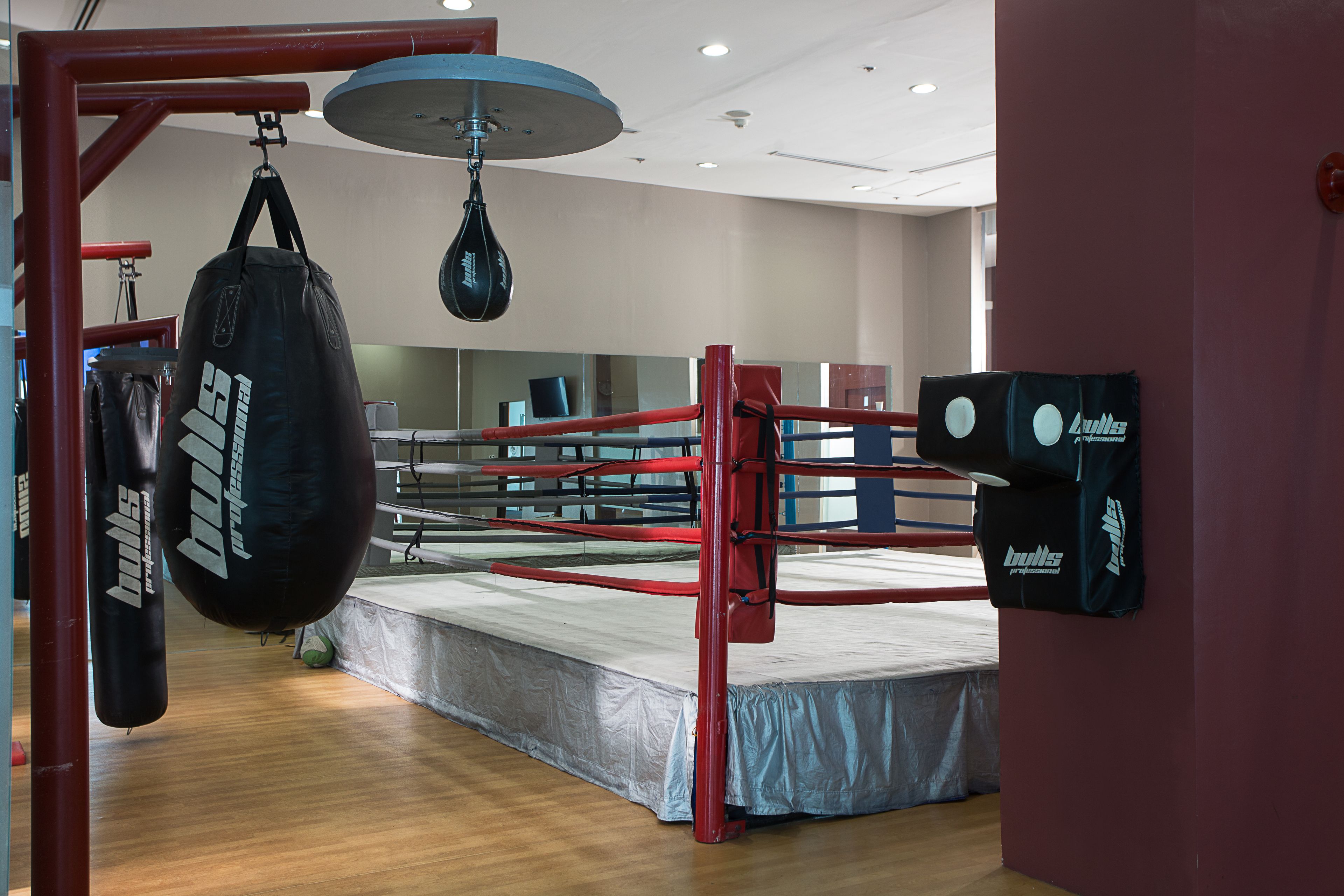 多目的屋内スポーツコートにはバスケットボールコートやバレーボールコート、テニスコート、バドミントンとピックルボールコート、スカッシュコート、ボクシングのリングと格闘技場などがそろっています。