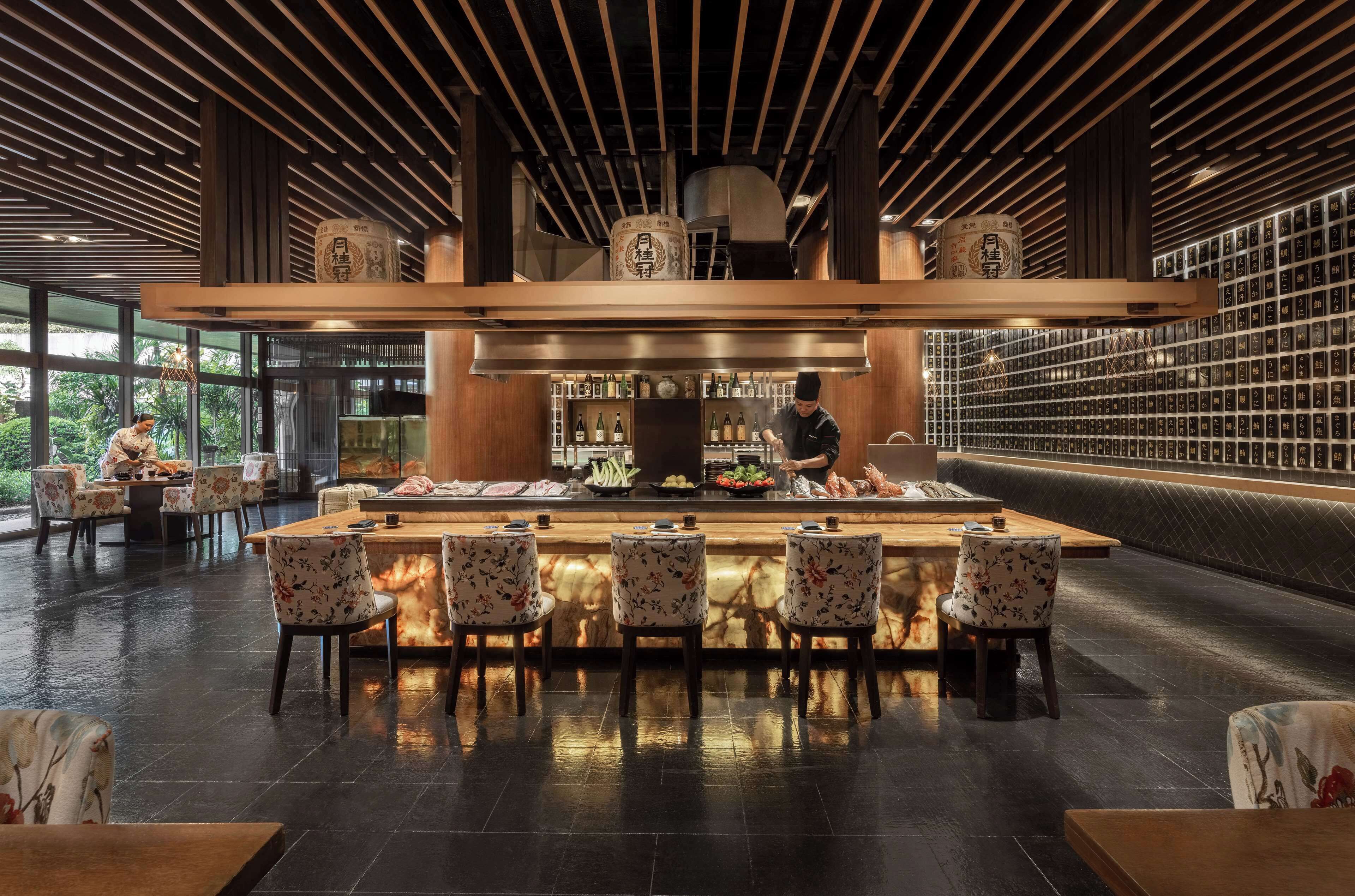 ホテル館内には、本格的な日本料理レストラン「UMU」も。受賞歴のある和風デザインとライブクッキングステーションが特徴で、個室のほかに優雅な日本庭園の屋外席も用意されています。