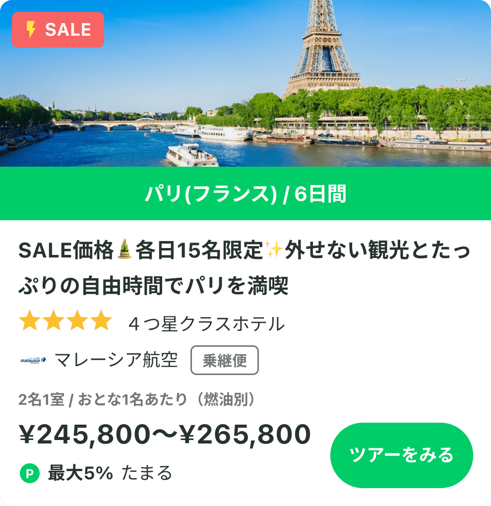 他社のツアーより料金が高い場合は、お問い合わせください。差額を返金します。※4