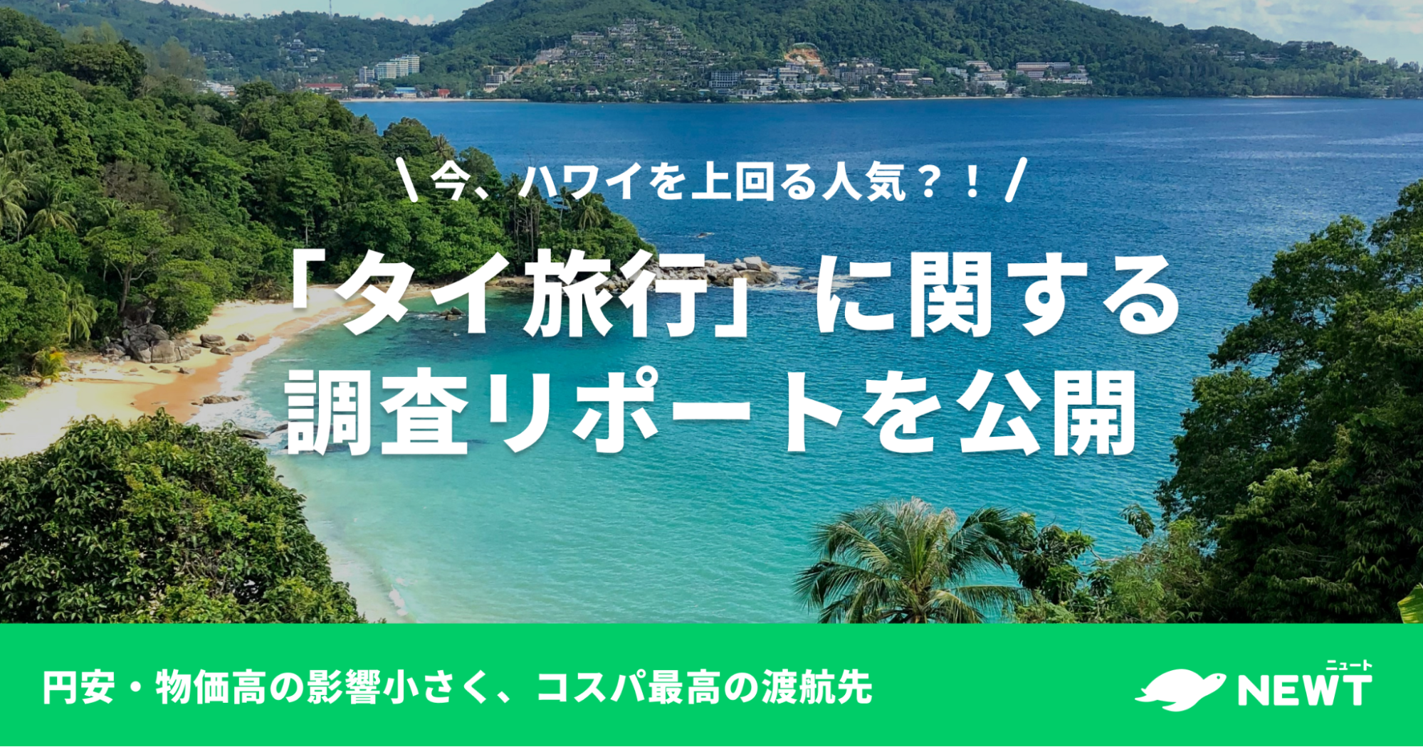 では、実際にタイ旅行にかかる総額はいくらくらいになるのか、NEWTが算出した2泊4日タイ(首都・バンコク)旅行の予算目安は、飛行機・ホテル代・現地で使う費用も含め、9万円でした。タイはアジア圏で、アメリカ・ハワイなどと比べ近いため、短い日数で楽しめるのも、コストを抑えられるポイントでしょう。