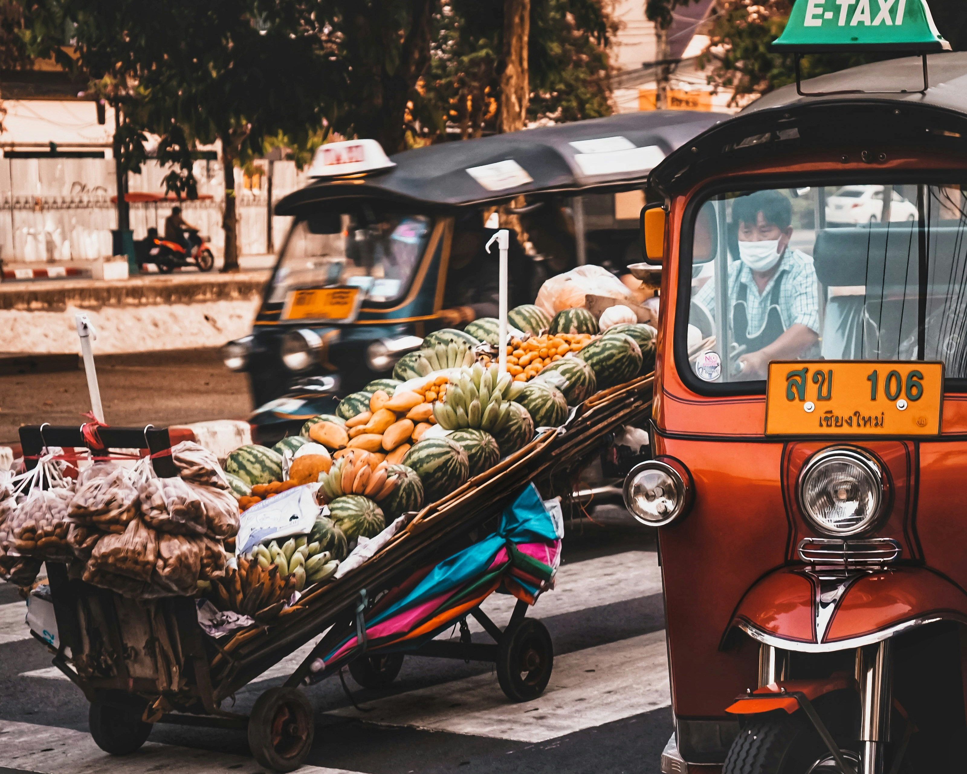 旧市街やその周辺の移動であれば、運賃は一律30〜50バーツ(約144〜240円)が相場。手を挙げて停め、運転手に行き先を告げて乗り込み、降りる時に支払うだけと使い方も簡単です!