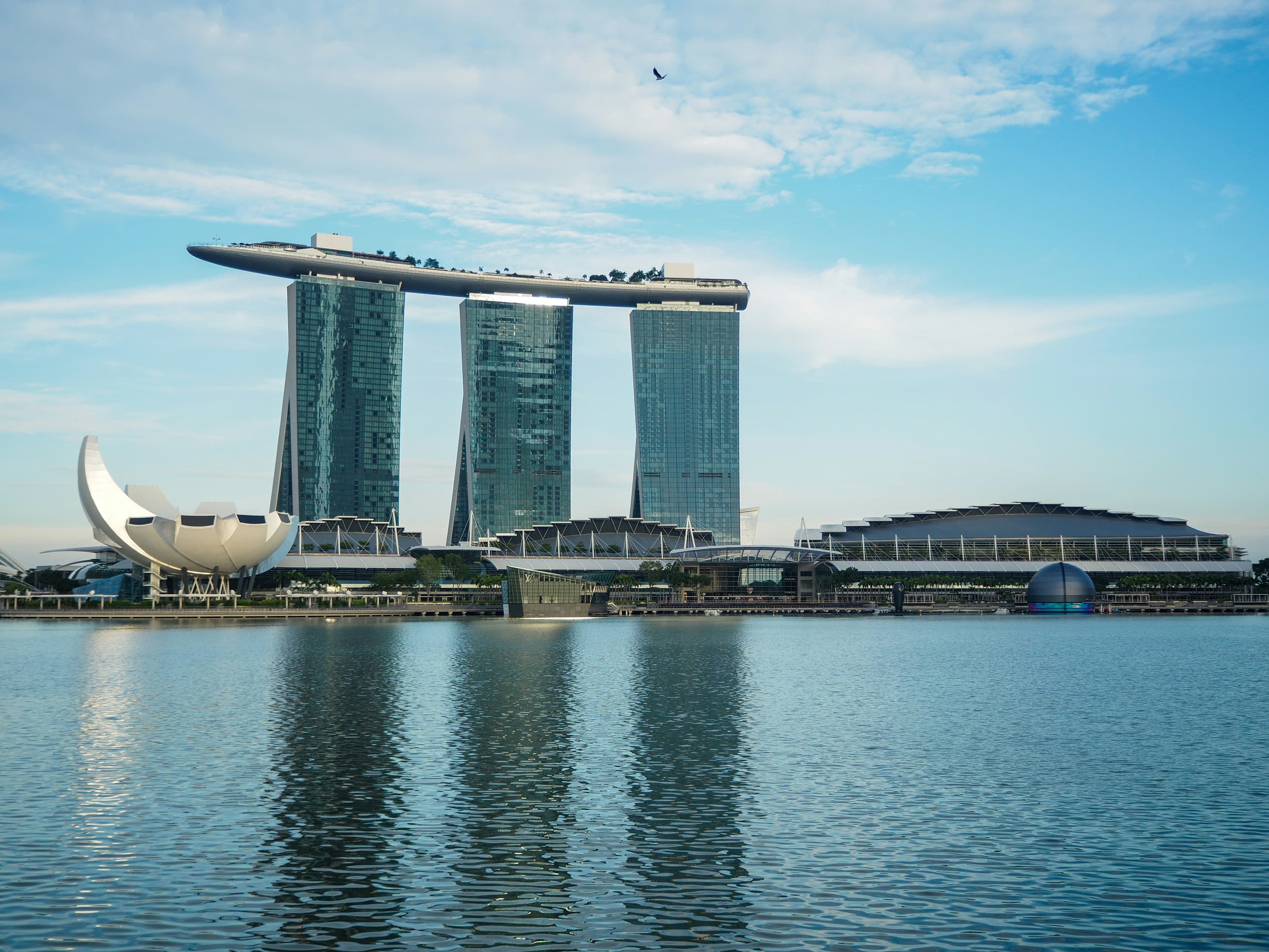 マリーナベイの象徴的スポット。56階建ての展望台からシンガポールの絶景を一望できます。