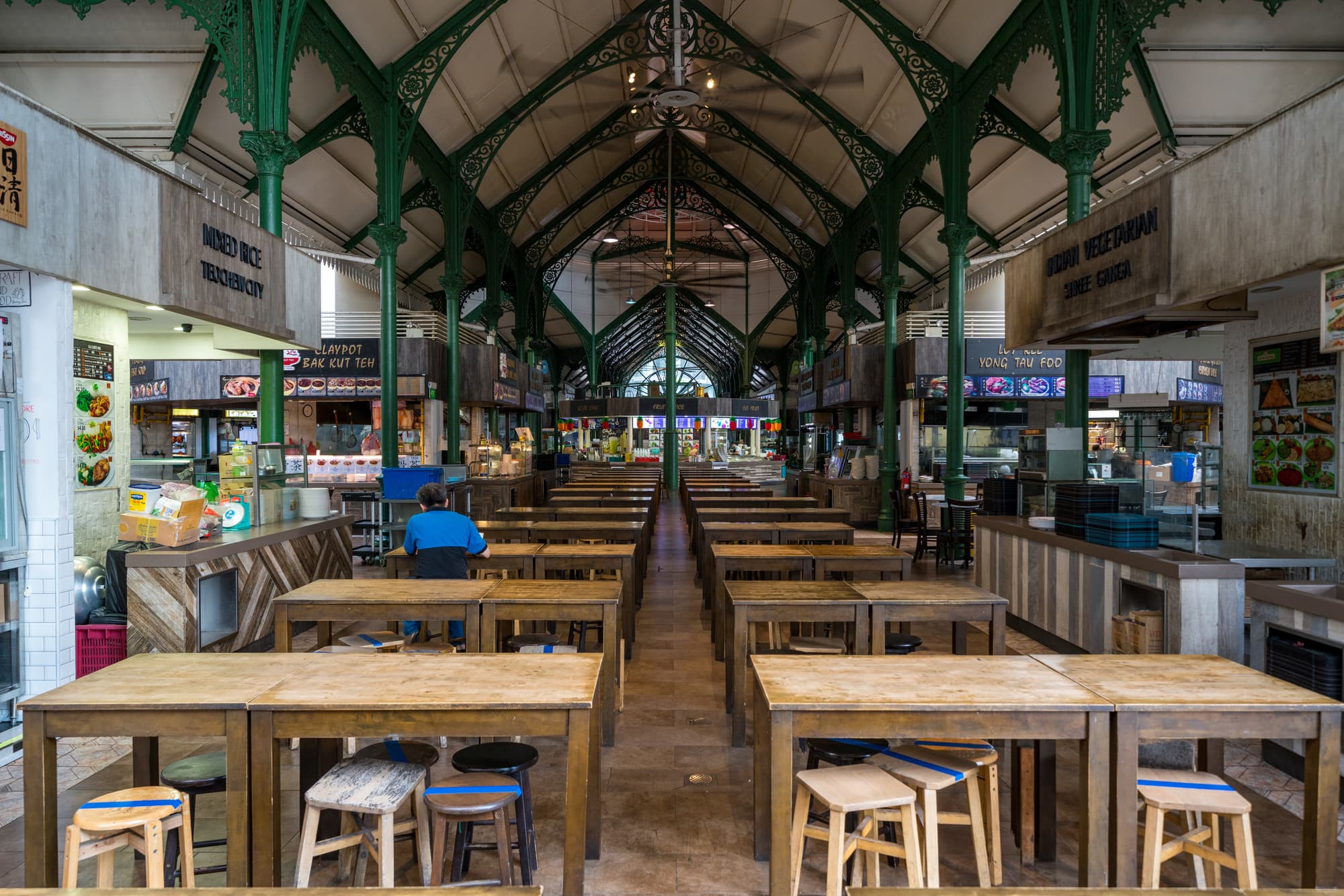 【ショッピングモールのフードコート】家族それぞれ好きなものを選べて、騒いでも気にならない雰囲気です。主要モール(オーチャード、マリーナベイ、VivoCity)なら大体あり、価格は900-2000円/人程度。清潔で子連れに最も安心です。