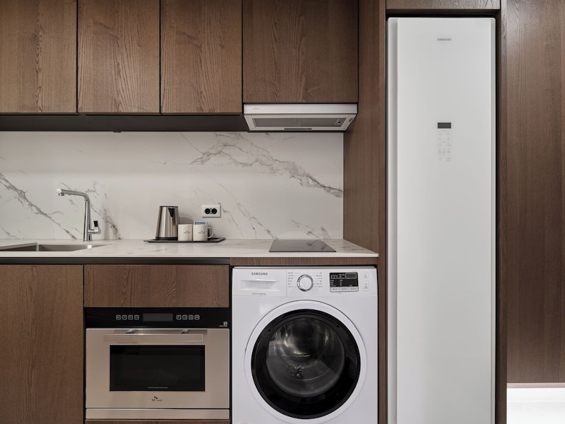 モダンで居心地のいい雰囲気を追求した部屋。長期滞在でも快適に過ごせるように設計されています。バルコニーつきでソウルの空気を感じられるのも魅力です。 ※こちらの部屋は3歳まで添い寝ができます。 ※3名1室の場合、エキストラベッドの搬入はありません。