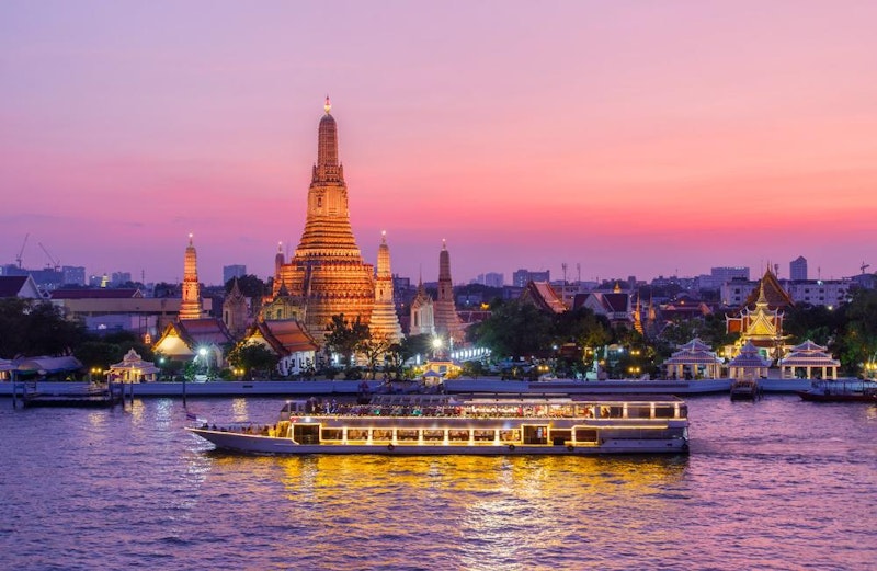 チャオプラヤー川を優雅に進むディナークルーズ。夜のバンコクのきらめく名所を眺めながら、タイ料理やインターナショナルビュッフェを堪能できます。 生演奏やライブエンターテインメントとともに、思い出に残るロマンチックな夜をぜひお楽しみください!