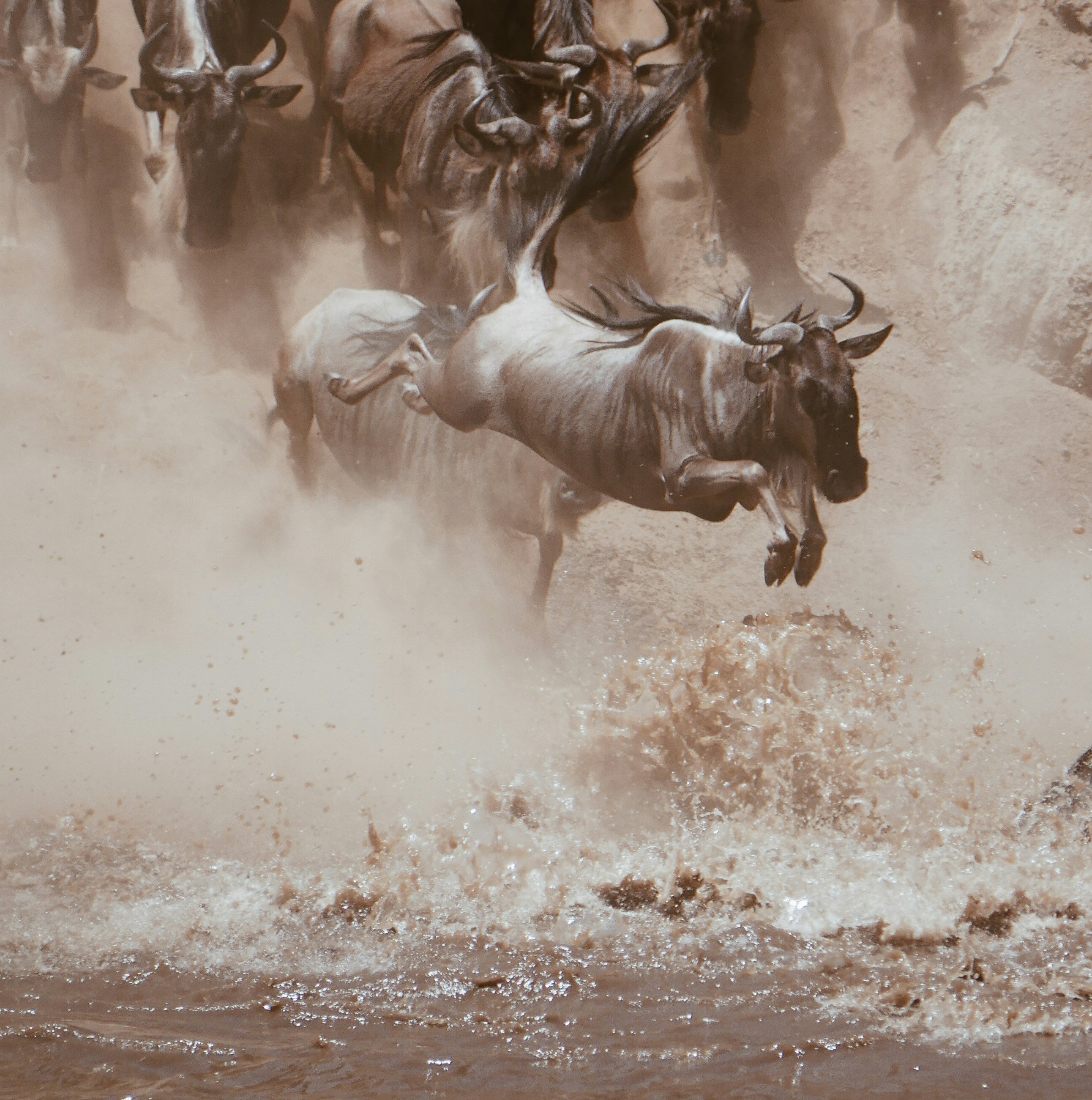 - 7月~10月:群れはセレンゲティ北部へ移動し、ケニアとの国境であるマラ川を渡ります。これぞ大移動のクライマックス!世界中から観光客が集まります。