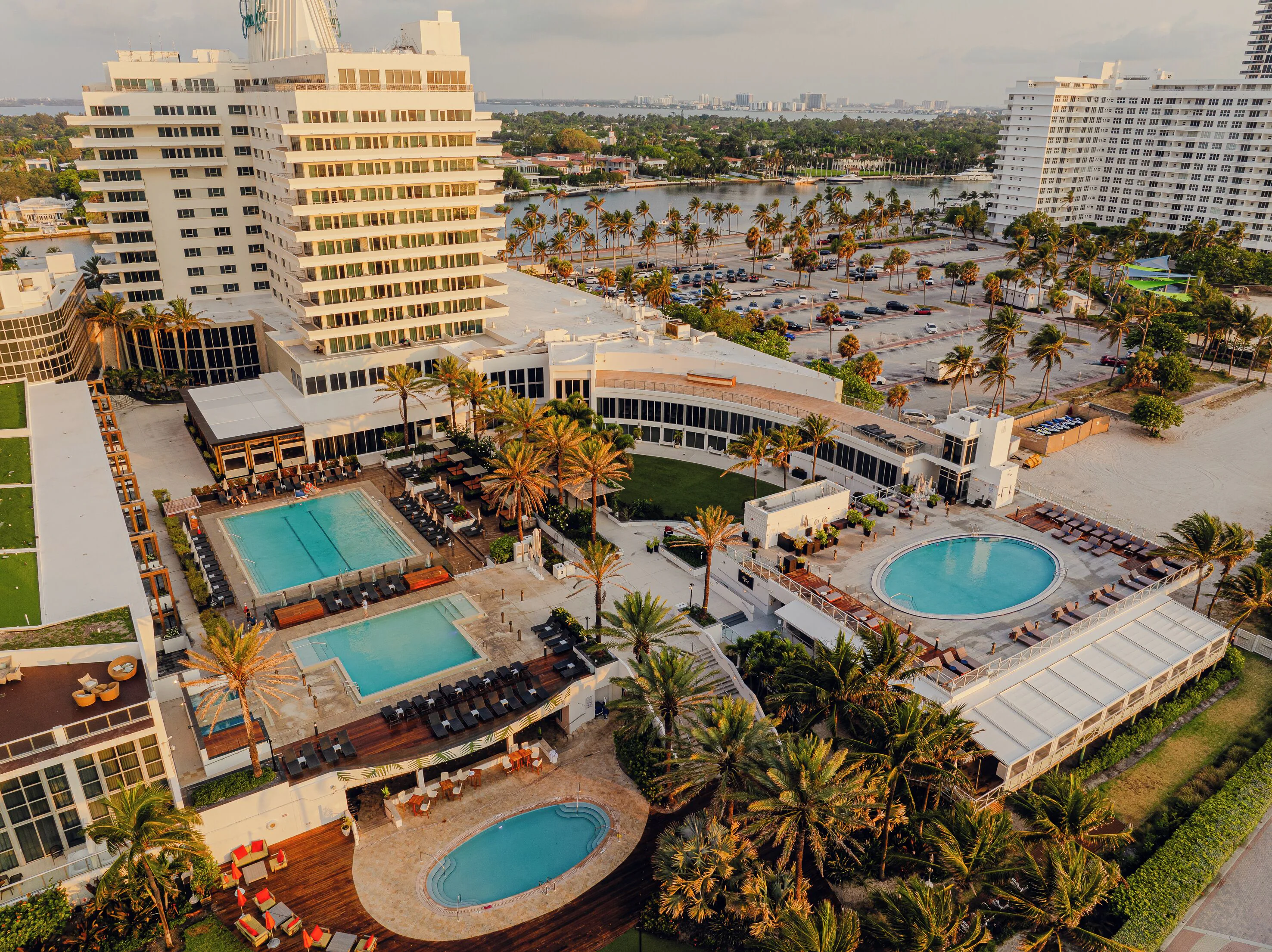 ホテルには4つの異なる雰囲気を持つプールエリアがあり、マイアミの陽気な気候を満喫できます。