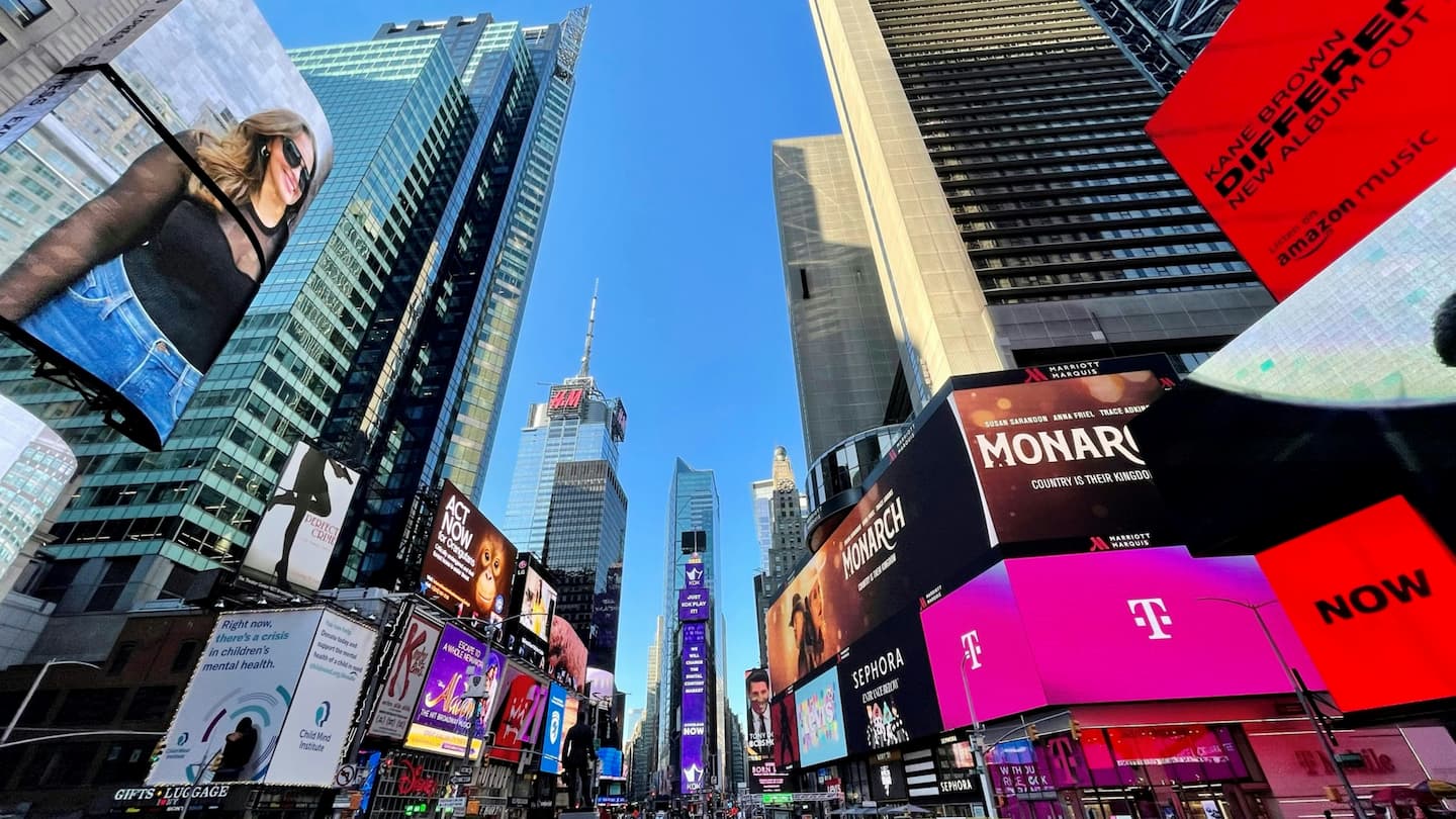 タイムズスクエアは、圧倒的な数のデジタル広告とネオンが街を照らす、ニューヨーク観光の王道スポット。すぐ近くにはブロードウェイの劇場街が広がり、観劇前後の散策にもぴったりです。