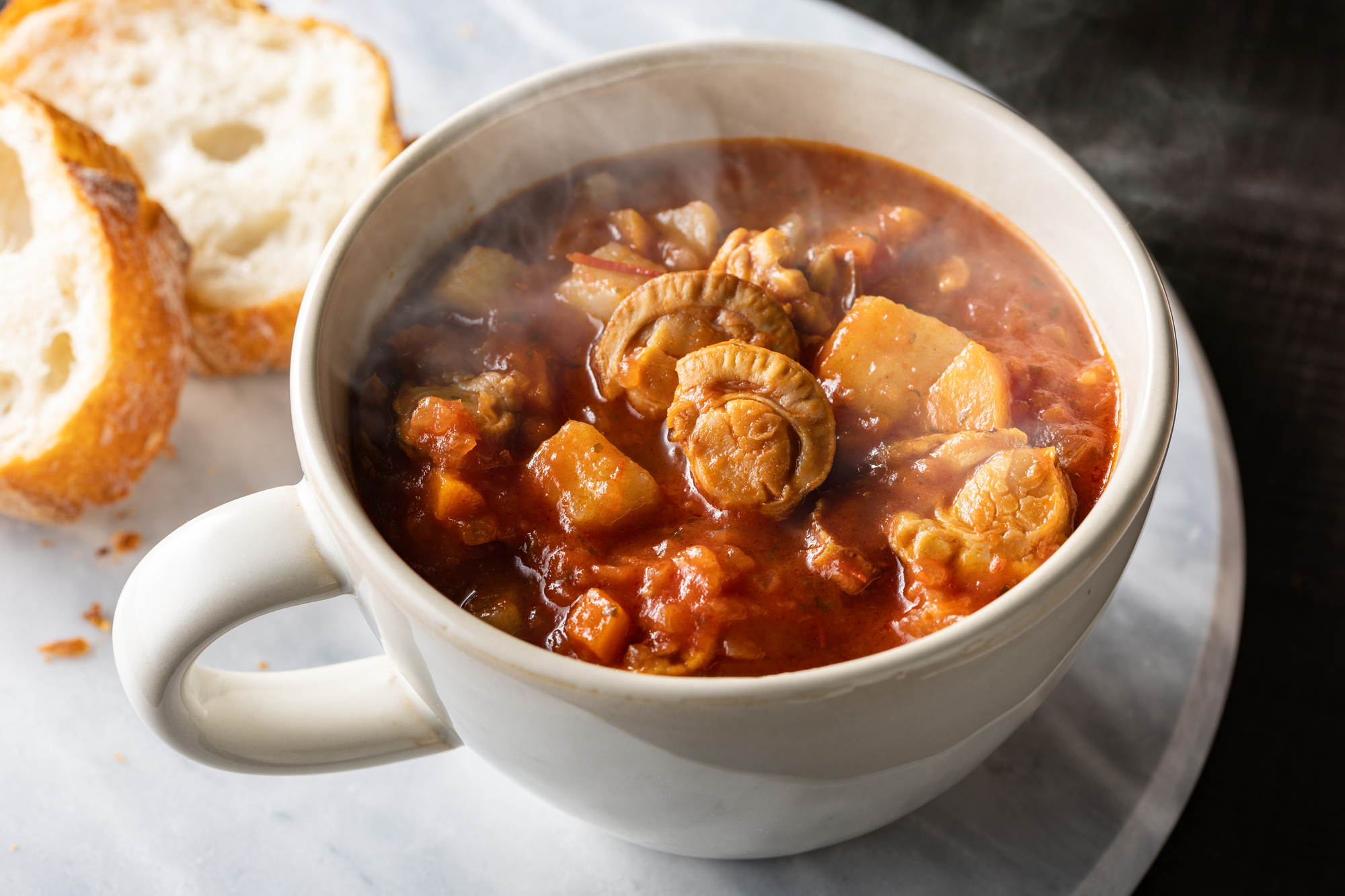 トマト風味の赤いクラムチャウダー