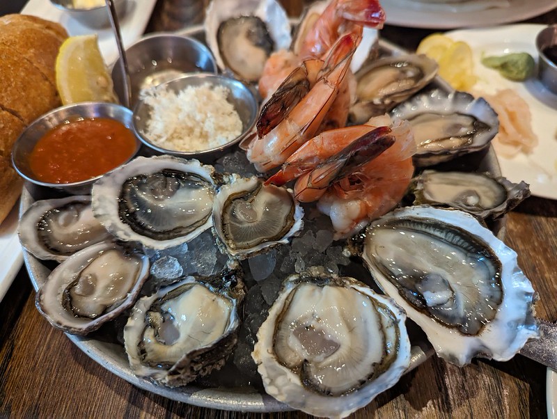 24〜26種類の生牡蠣が日替わりで味わえるオイスターバーを併設し、その場で殻を開けてくれるため、新鮮な生牡蠣を楽しみたい方にぴったり!生牡蠣のほかには、太平洋北西産を中心に、ダンジネスクラブやサーモン、ヒラメなど、地元の魚介類を使ったシーフード料理も充実していますよ。
