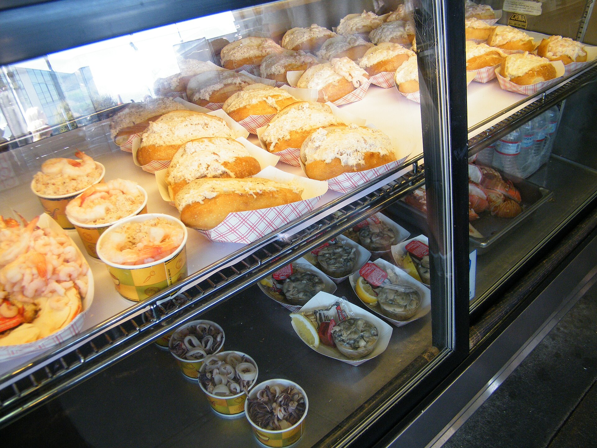 高級な料理もたくさんある一方、気軽に味わいたいならおすすめはシーフードサンドイッチ。マヨネーズ系のソースで和えられた身をたっぷりと挟んだエビサンドやロブスターロール、クラブサンドなどをぜいたくに食べ歩きで楽しめます。