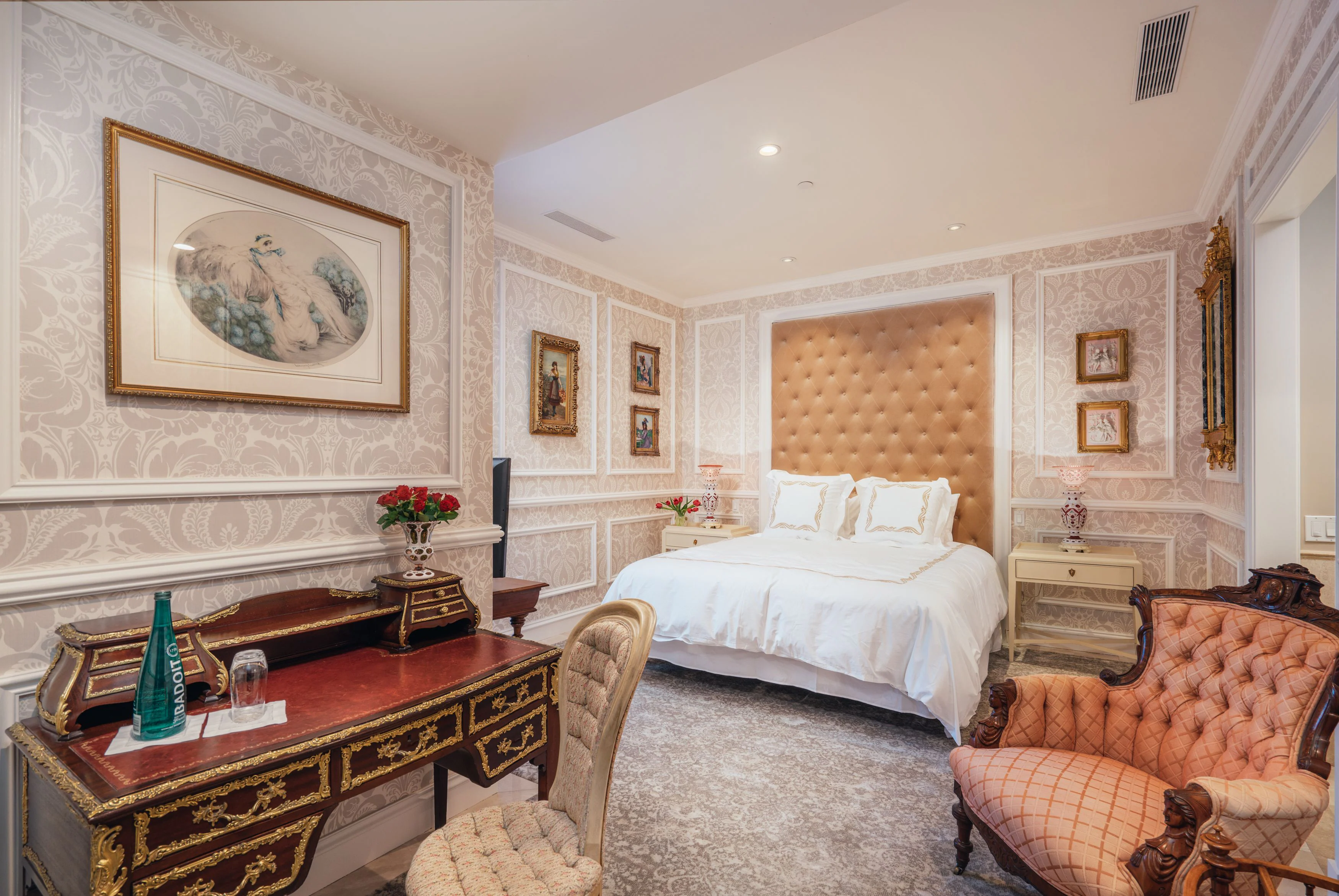 格式高いクラシックさと、現代的な洗練が調和したデザインが特徴のお部屋。優雅なインテリアや上質な寝具が特別なひと時を演出し、非日常へといざなってくれます。