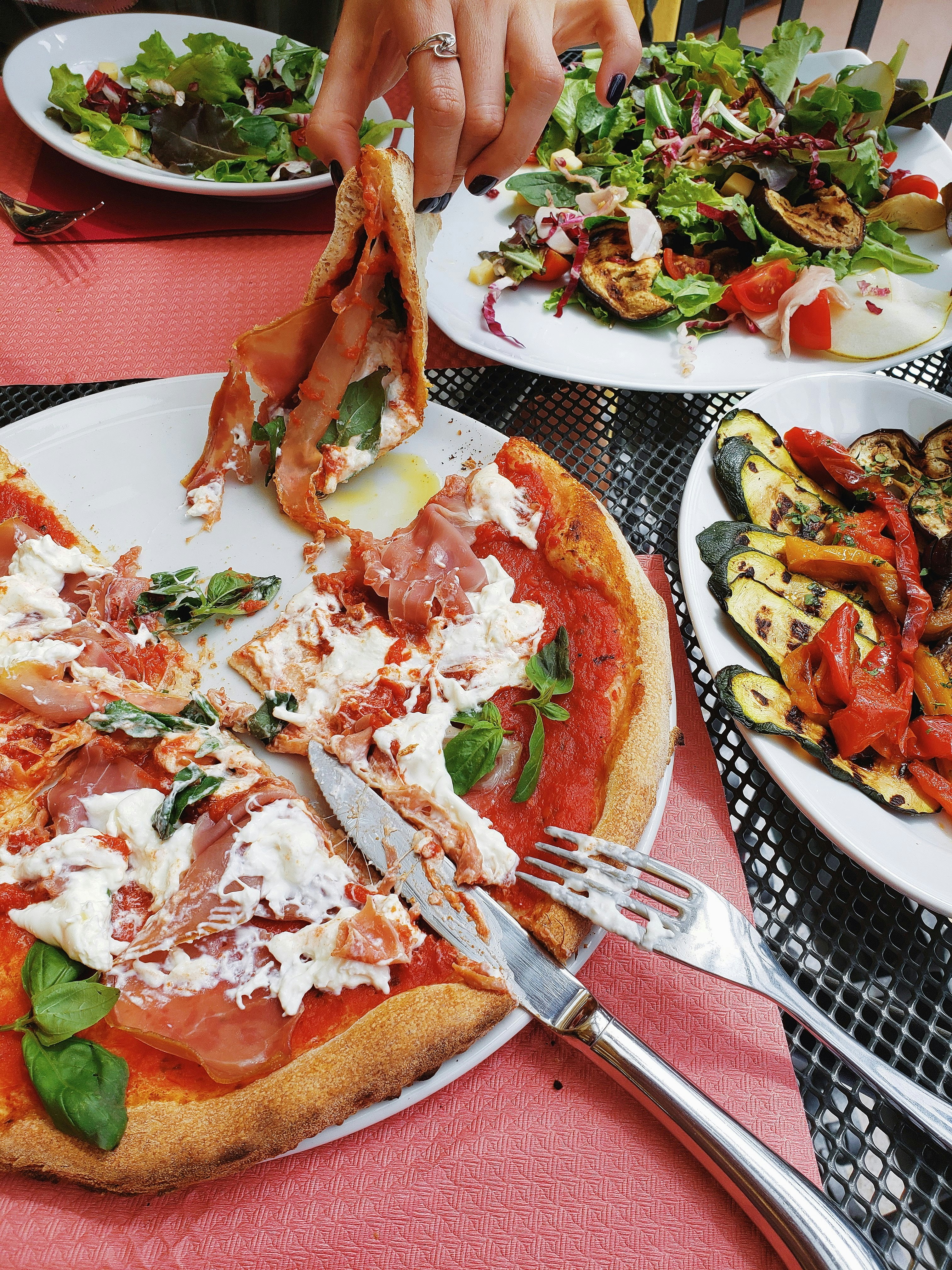 毎食レストランだと食費がかさんでしまいます。ランチはパニーニや切り売りピザなど10ユーロ以下で楽しめるB級グルメを、ディナーは少し奮発しておいしいパスタを、といったようにメリハリをつけるのがおすすめ。飲み物はスーパーで買う習慣をつけるだけで、かなりの節約になりますよ。