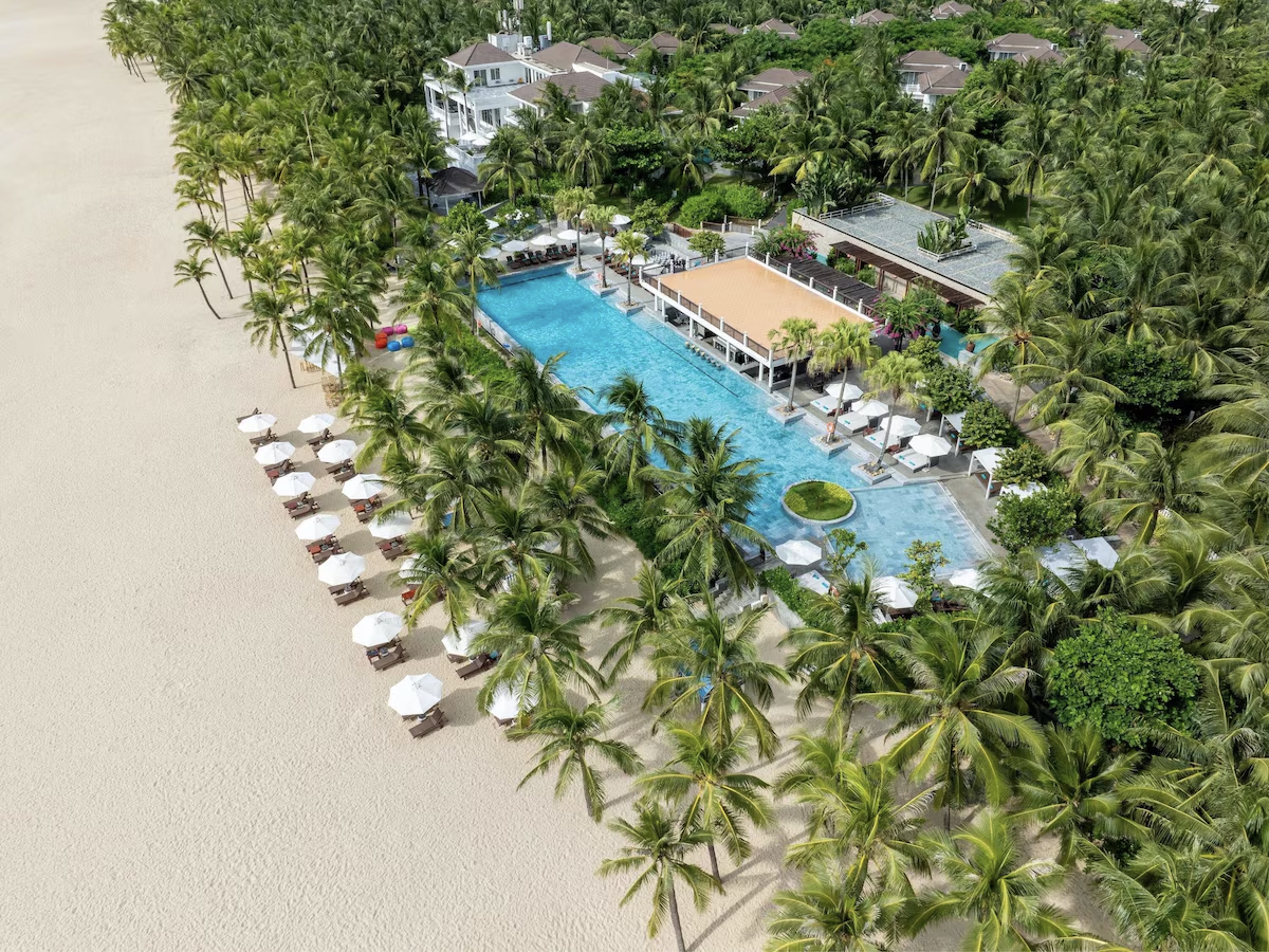 チュオンソン山脈と東シナ海のあいだに広がる自然豊かなエリアに建つバンヤン ツリー ランコー。全室プライベートプール付きのヴィラで構成された高級リゾートで、静けさの中にぜいたくが溶け込むような滞在が楽しめます。