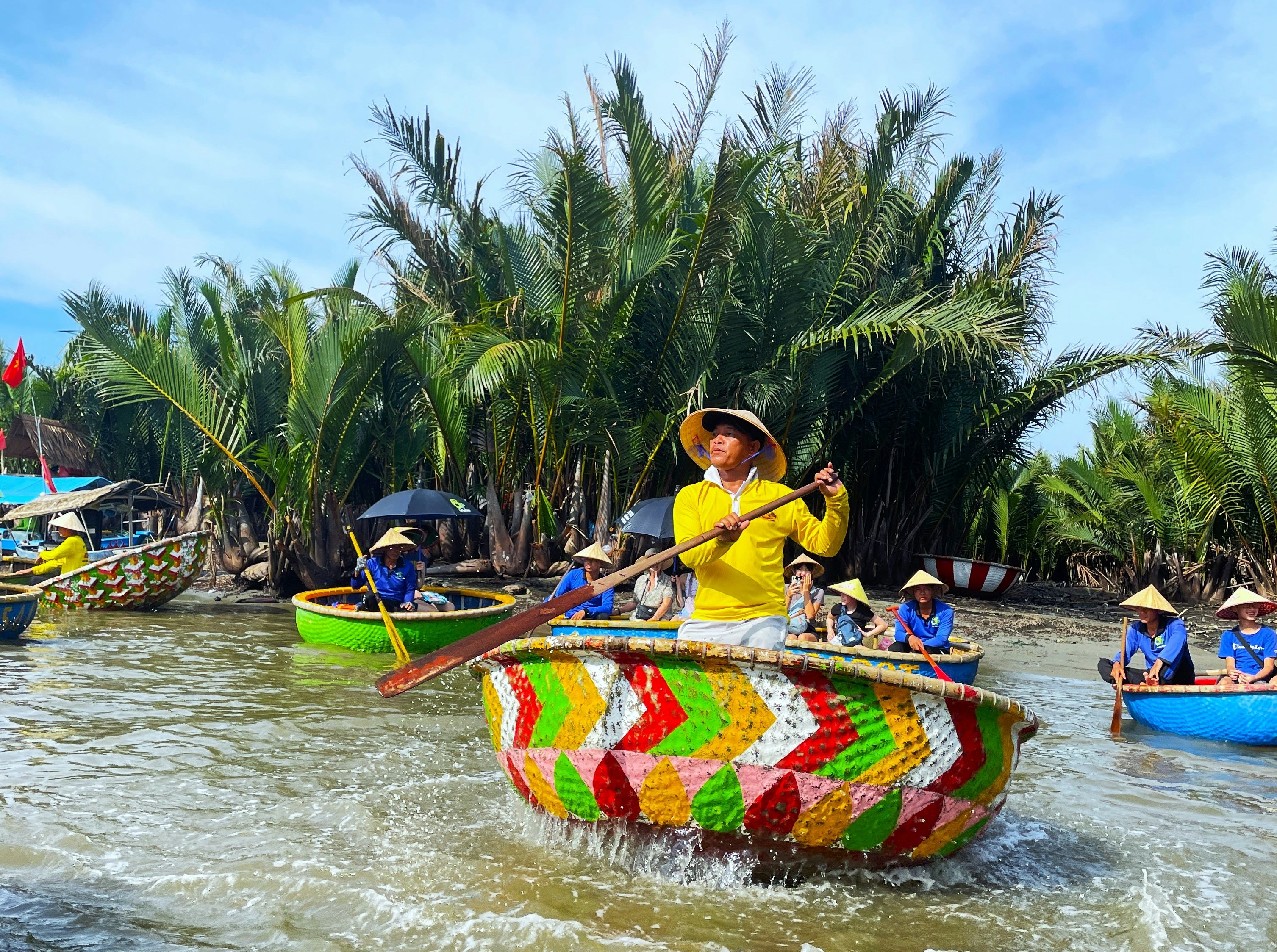 ホイアン名物の一つ、ヤシの木々が生い茂る川を丸いボートで進むアクティビティ。現地の入場料が30,000ドン(約180円)、ボート代が1隻120,000ドン(2名分、約720円)が相場とされています。つまり、1人あたり約90,000ドン(約540円)で体験できる計算です。