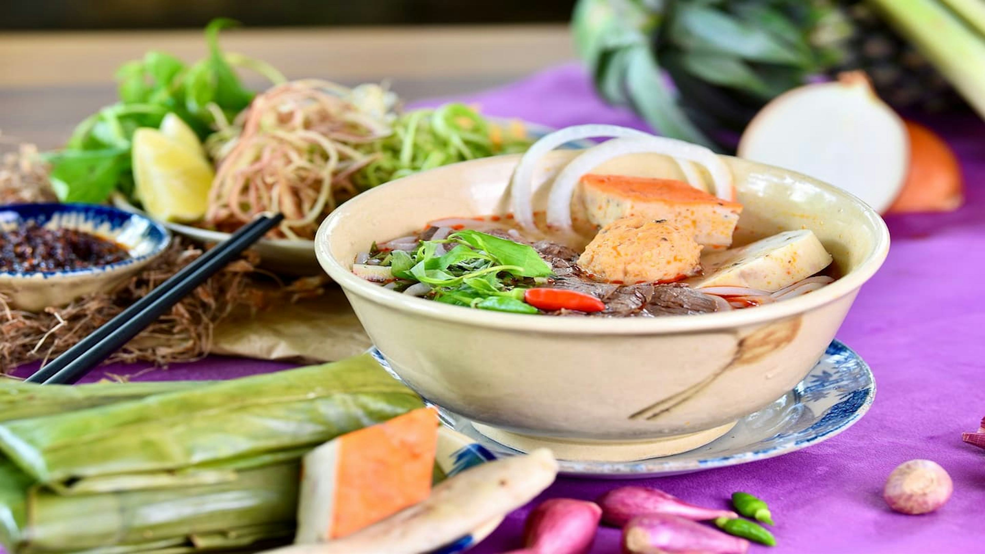 ブンボーフエは、牛肉スープと米の麺から作ったベトナム中部フエの郷土料理です。牛肉を使用したボリューミーな麺料理で、全土で袋麺やカップ麺としても販売されています。