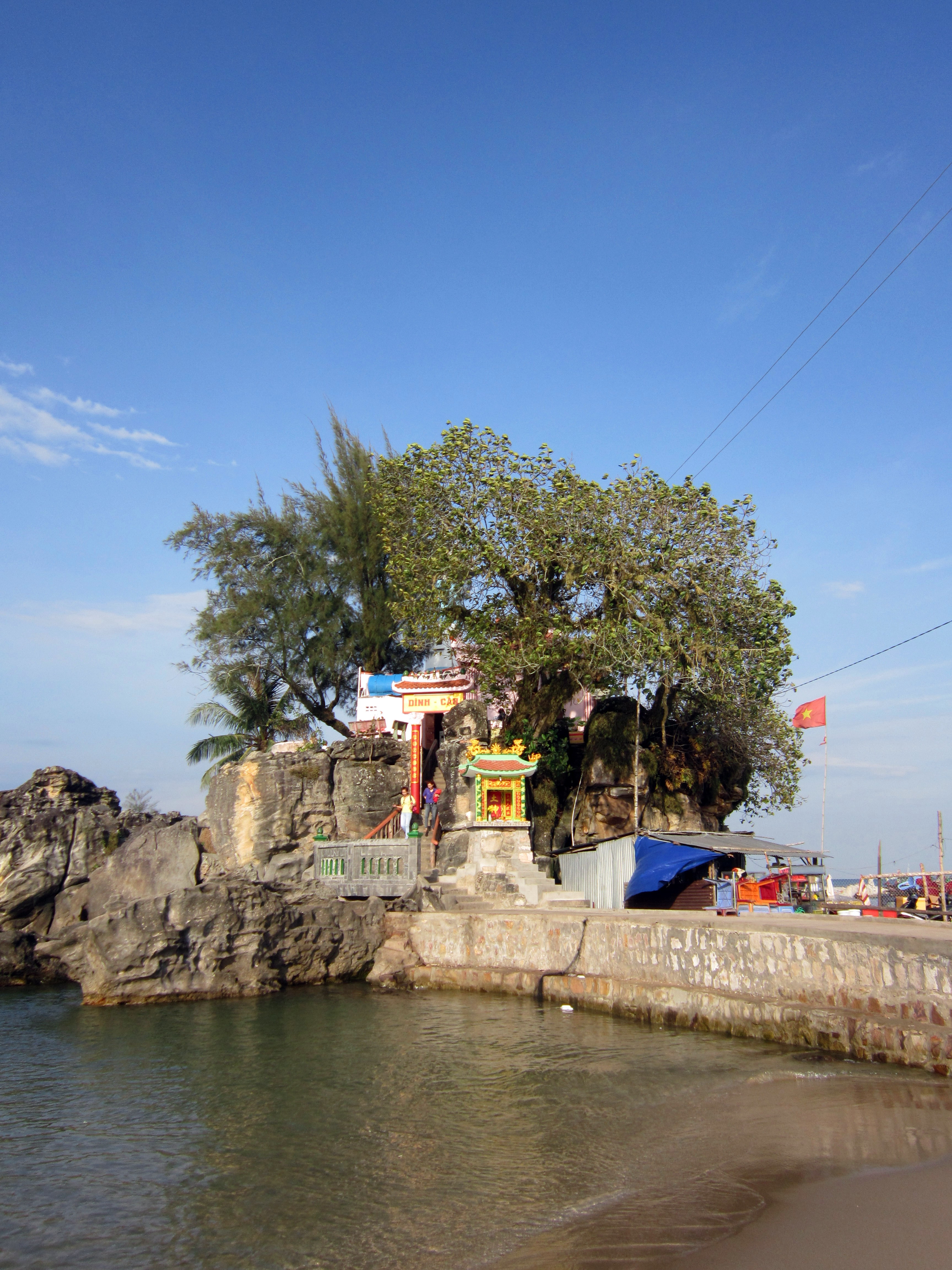 寺院へは石段を登って参拝し、頂上からは夕日に染まる海と港町を一望できる絶景スポットとしても人気!毎年旧暦10月には、漁師たちが感謝の祈りを捧げる「ディンカウ祭り」も開催されますよ。