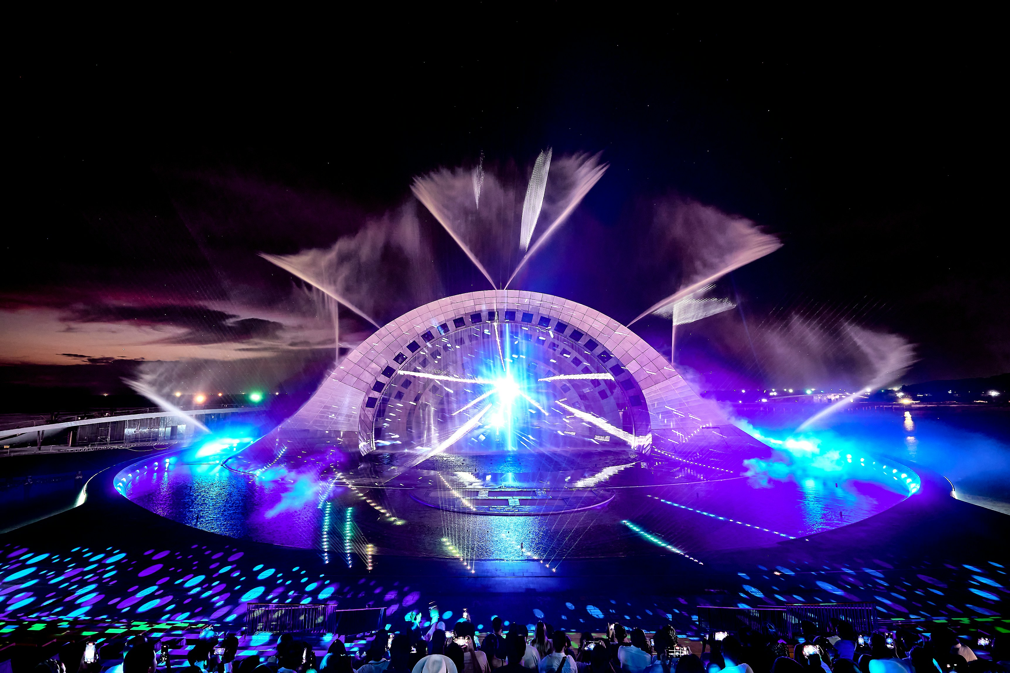 サンセットタウンで行われる「キス オブ ザ ショー」は、世界的アーティスト60名による圧巻の水上ショー!