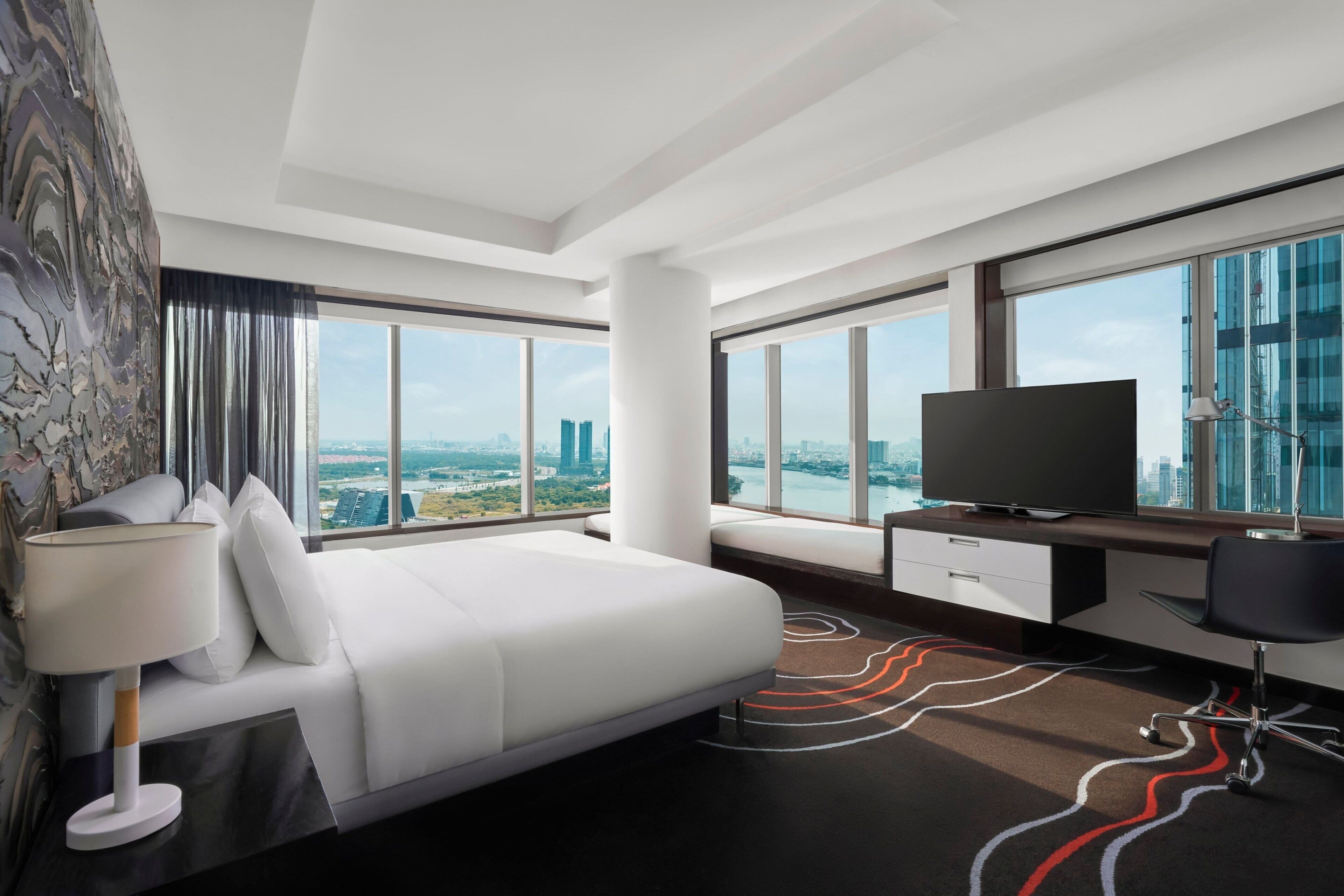 ル メリディアン サイゴンにあるお部屋は、スタイリッシュで居心地のいい雰囲気が広がっています。日差しが差し込む大きな窓からは、川や街といったホーチミンの素晴らしい景色を一望できます。ミニ冷蔵庫やミニバー、デスク、アイロンといった基本的な設備を完備!